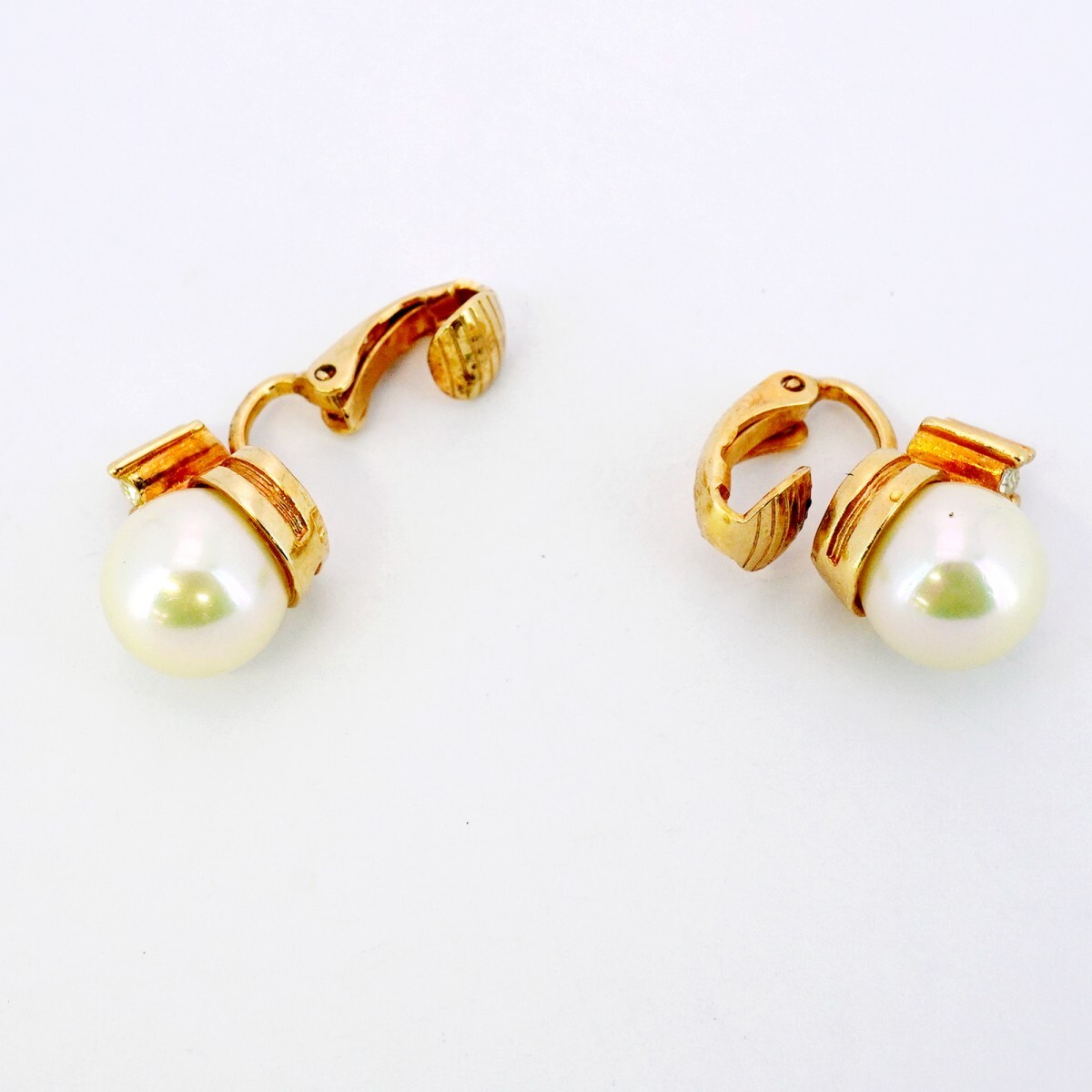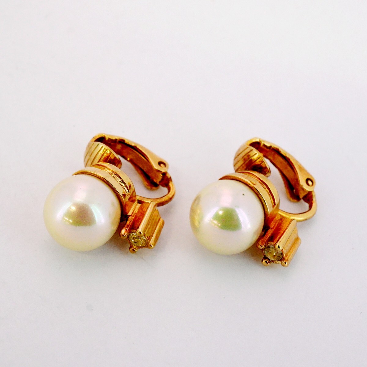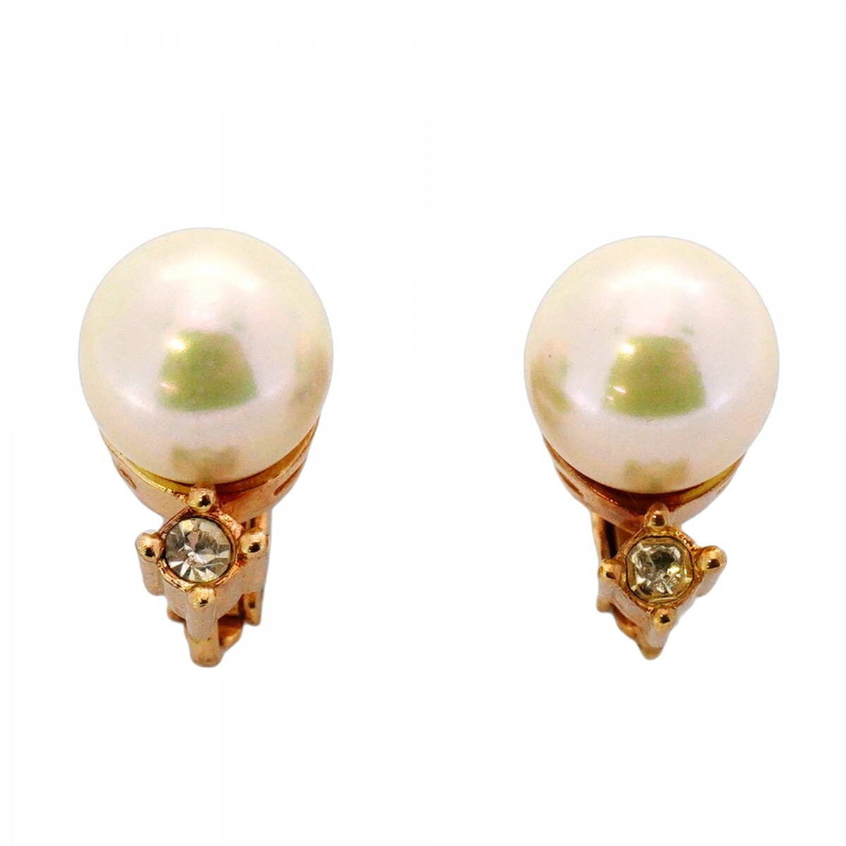 【5jib0813】クリスチャンディオール イヤリング GPメッキ フェイクパール ラインストーン ゴールド【中古】レディース