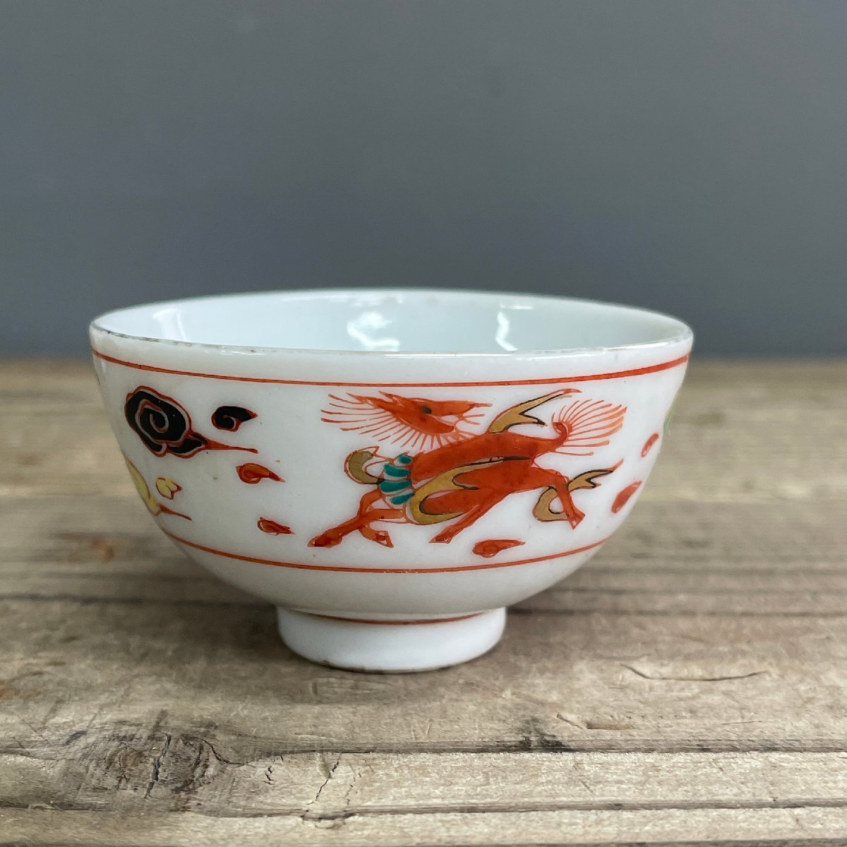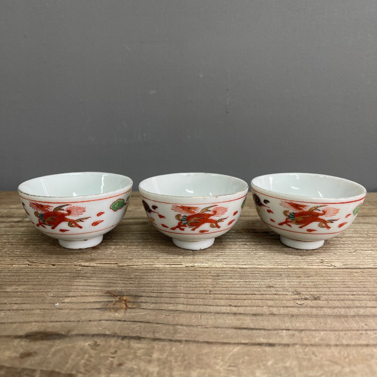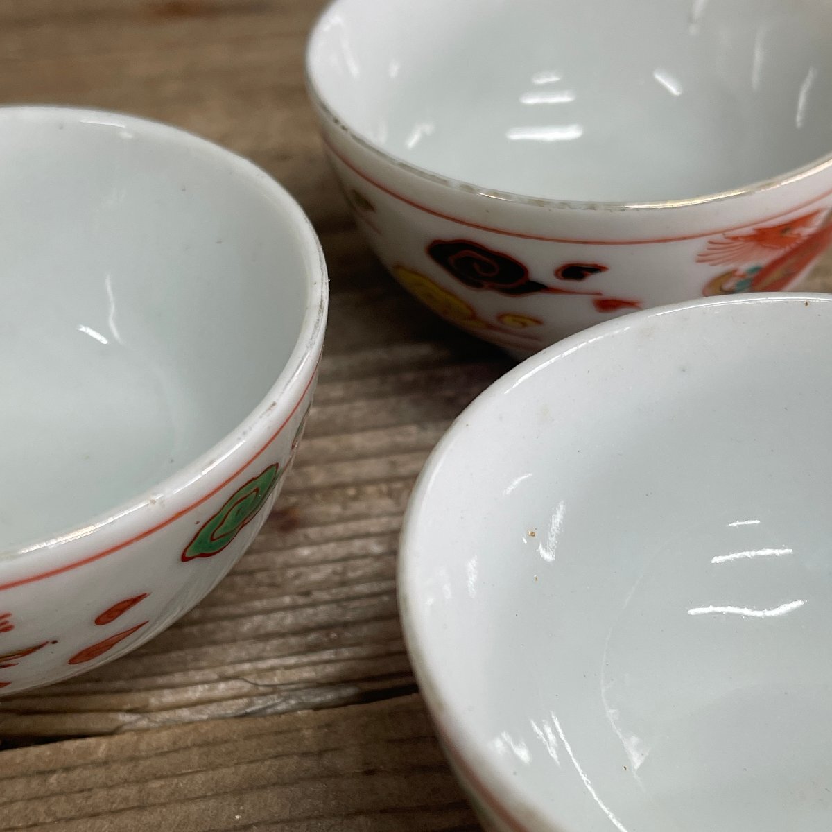 | 骨董 茶器 九谷焼 獅子 赤絵 曇 3客 サイズ口径7×4.3㎝ |