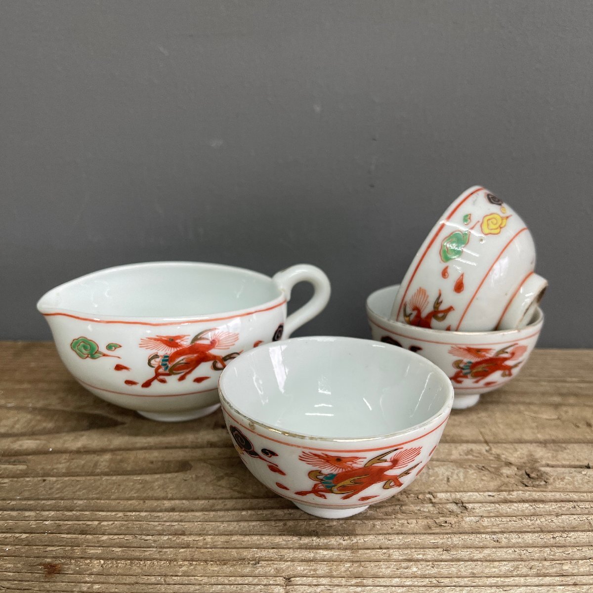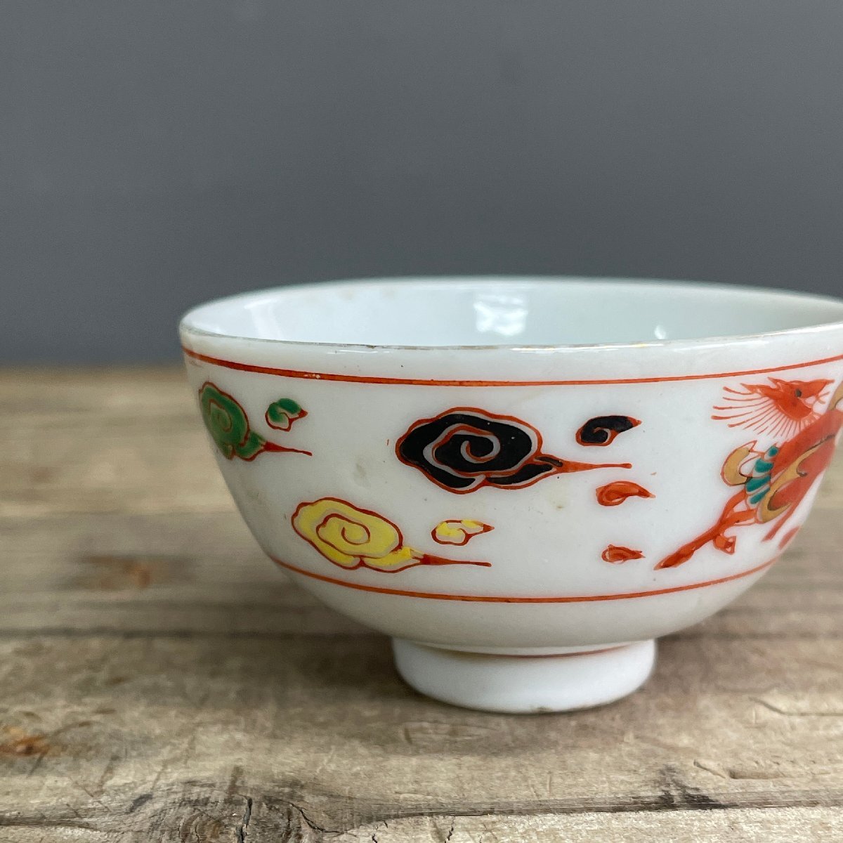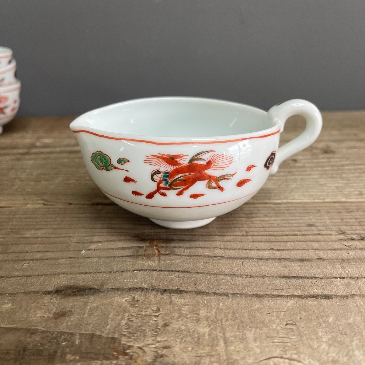 | 骨董 茶器 九谷焼 獅子 赤絵 曇 3客 サイズ口径7×4.3㎝ |