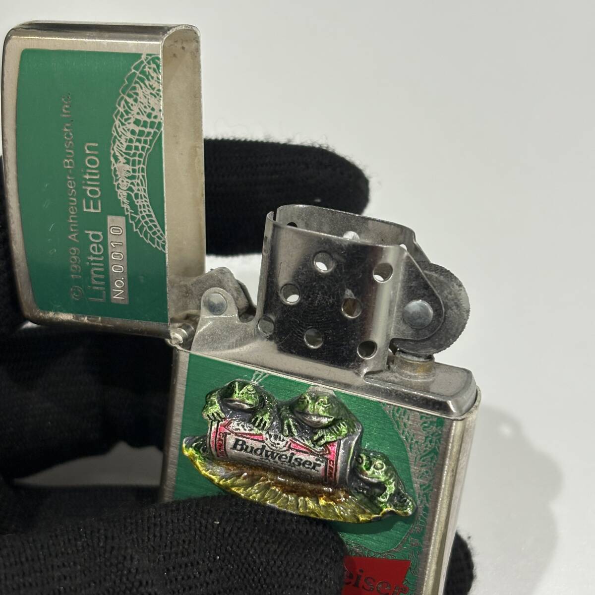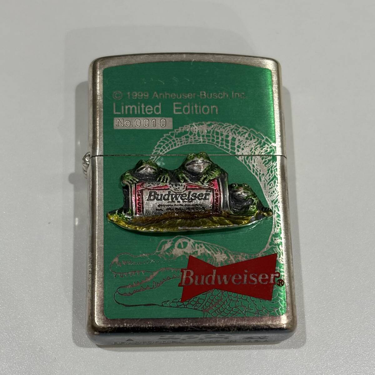 ZIPPO ジッポ オイルライター 喫煙グッズ 喫煙具 着火未確認 Budweiser Limited Edition №0010 カエル ワニ 立体 長期保管 現状品 中古 82