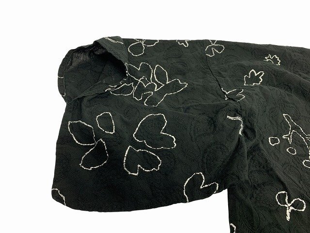| 若干の使用感がある中古品ですが目立った汚れやダメージなどはありません。ペイズリーの織模様にシルバーカラーのプリントでかわいいボタンの羽織です。 ※ 状態は、弊社基準により表記をさせて頂いております。 ※ リユース商品の為、表示しきれないダメージなどある場合もございます。 ※ 実店舗業務の運営上、質問にお時間をいただく場合や主観的なご質問にはお答えできかねる場合がございます。 サイズ | | 【肩幅】 : 67cm 【着丈】 : 58.5cm 【袖丈】 : 28.5cm すべて平置きでの採寸となっております。 素人採寸ですので、ご参考程度にお願いします。 付属品 | ※ 出品商品はお写真に写るものが全てとなります。 | ※ ハンガー・スタンド等、備品を用いて撮影している場合がございますが、備品は付属いたしません。 店舗名 | 朝日店 | 発送について | ゆうパック、もしくは 佐川急便、ヤマト運輸(選択は出来ません) 元払のみの発送です。管理上その他の発送方法には、対応できません。お問い合わせは、ご遠慮願います。 | お支払いについて | 落札金額 + 消費税 + 送料 のお支払いとなります。 | 送料は送料欄にて、お届け先の都道府県をご選択頂き確認をお願い致します。 ※ 離島など別途追加が必要な場合もございます。 ※【お支払方法】銀行振込・代引きには対応しておりません。 同梱について | ※ 発送の拠点が複数ございます。同梱できない場合は個別配送となりますので、ご容赦下さい。 | ご落札の流れ | ヤフオク!ストアが出品した商品を落札した場合、個人が出品した場合とは取引方法が異なります。また、ストアとの取引では商品受け取り後の受け取り連絡は必要ありません。 | >> ヤフオク! リンクはコチラ ご注意事項 | お写真は撮影時の状態です。 | 店頭にて併売しているお品はコンディションが変わる場合もございます。 購入時に著しくコンディションが変わってしまっている場合はご連絡いただければ真摯に対応致します。 お色・状態に関しては、モニター環境や、太陽光・室内ライトなどの環境により、見え方が違う事もございますので、ご理解頂ければ幸いです。 中古品ですのでノークレームノーリターンでお願い致します。 材質タグがある場合は、写真撮影しておりますので そちらでご確認願います。 他店舗でも同時に販売しておりますので、売り切れの際は ご容赦頂ければ幸いです。 |