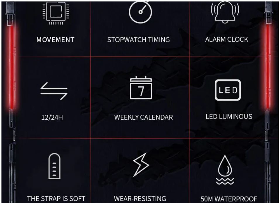 複数の関数 :アラーム、ストップウォッチ、時計が含まれており、日常使用のための多目的なアクセサリーになっています。
