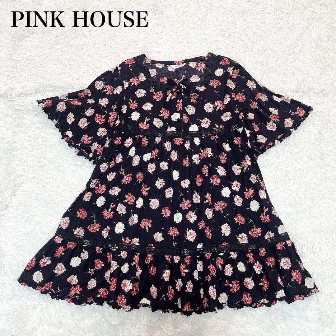 美品 ピンクハウス フラワープリント レース チュニック フリル 近年物