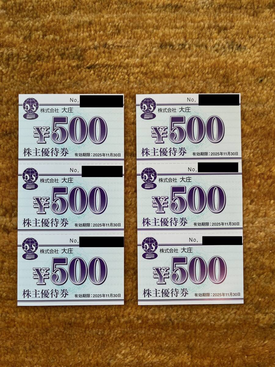 【送料落札者ご負担】大庄株主優待券3000円分(有効期限:2025年11月30日)