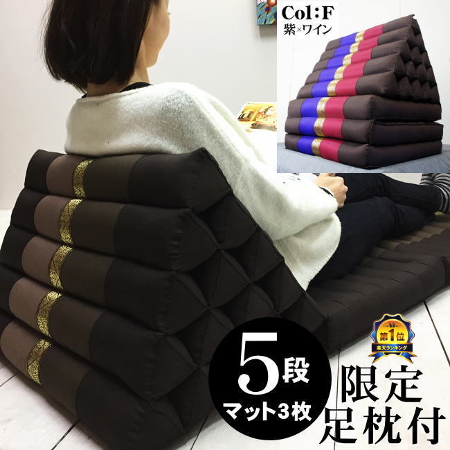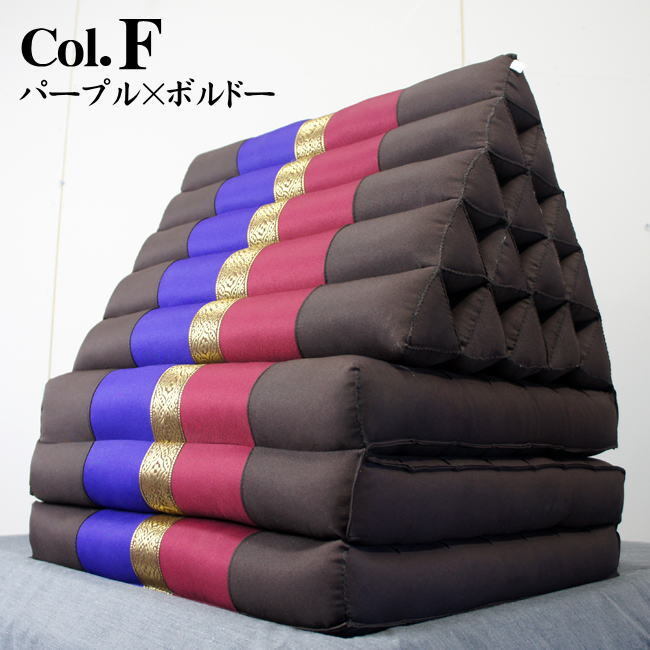 三角枕 タイ 三角 クッション 枕 5段 マット 3枚 F パープル ボルドー 無地 リボン 座椅子 昼寝 ごろ寝 マット付き