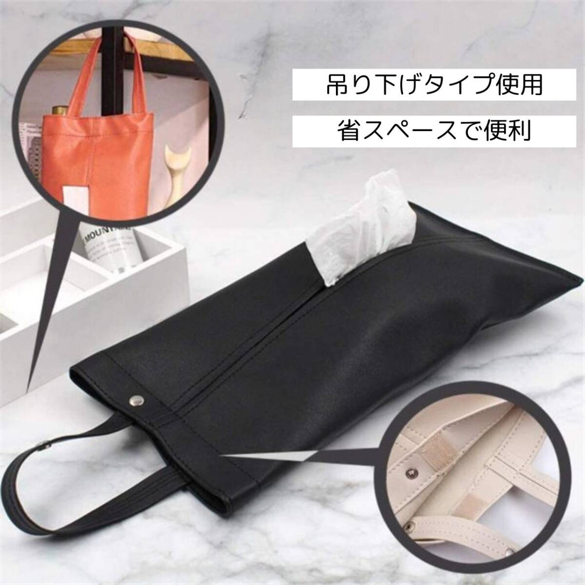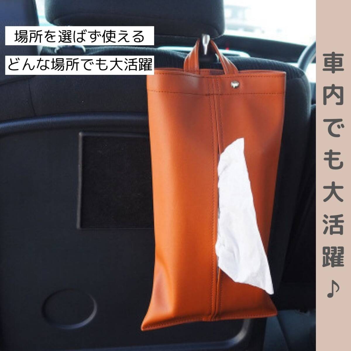 【カラー】タイトル、商品画像1枚目をご確認ください。【吊るす式で使い勝手バツグン】吊るすだけで手軽に使えるティッシュケース。車内や場所を選ばず、いつでも清潔なティッシュが手に入ります。【取っ手の片側が取り外せるボタン仕様】ボタンで取っ手部分の片側が取り外し可能。使い方に合わせてアレンジでき、便利なカスタマイズが可能です。【車に最適、ドライブを快適に】車内にぴったりなデザイン。高級感漂うPUレザー素材で、車内の雰囲気を一層引き立てます。【高級感と耐久性、撥水性を兼ね備え】PUレザー素材が与える高級感と、優れた耐久性・撥水性。長く愛用できるティッシュケースで、清潔な生活を手に入れましょう。【サイズ】横35cm×縦18.5cmほとんどの箱型ティッシュペーパーに対応しているサイズです。【注意事項】・海外製品の為多少の傷や汚れ等ある場合がございます。・送料の都合上箱なし、簡易包装での発送となります。コメントなしでの即購入可能です。おまとめ買いでお値引きさせていただきます。お気軽にコメントください。ブラック ネイビー ブラウン 黒 紺 茶 ティッシュ カバー ケース 車内