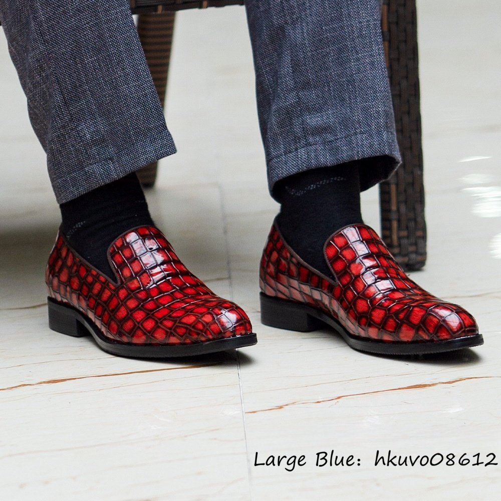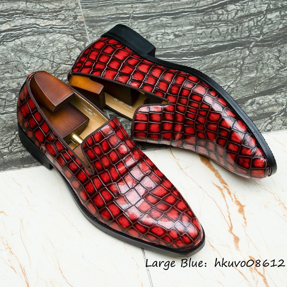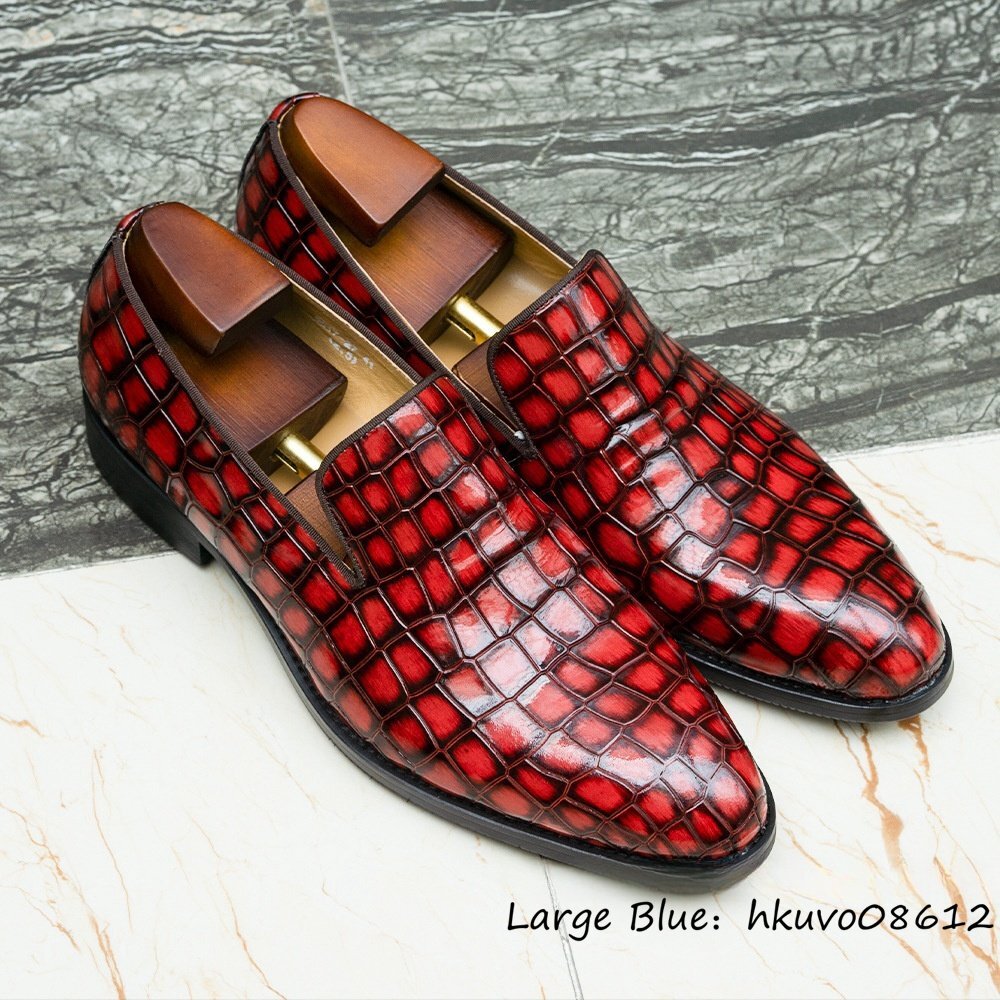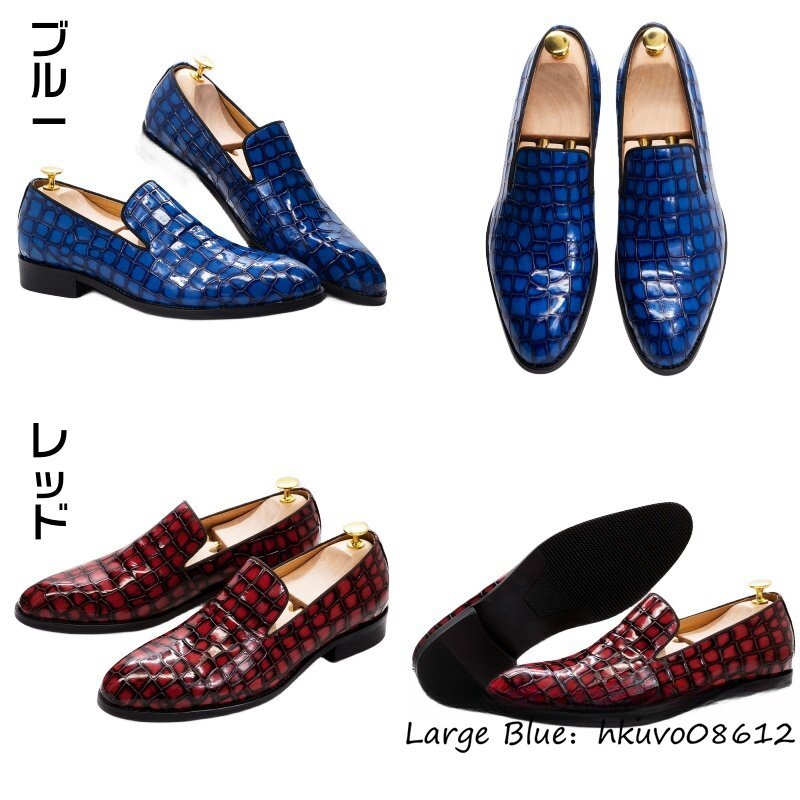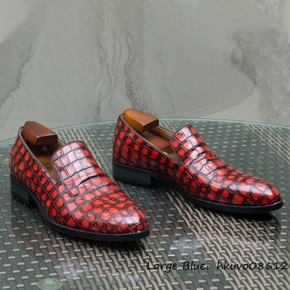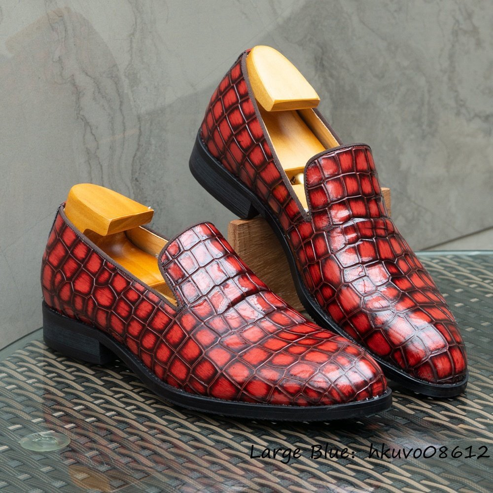 超美品★定価9万 ローファー ビジネスシューズ 本革 レザーシューズ 職人手作り 高級牛革 紳士靴 革靴 宴会 結婚式 光沢 艶 レッド 24.5cm
