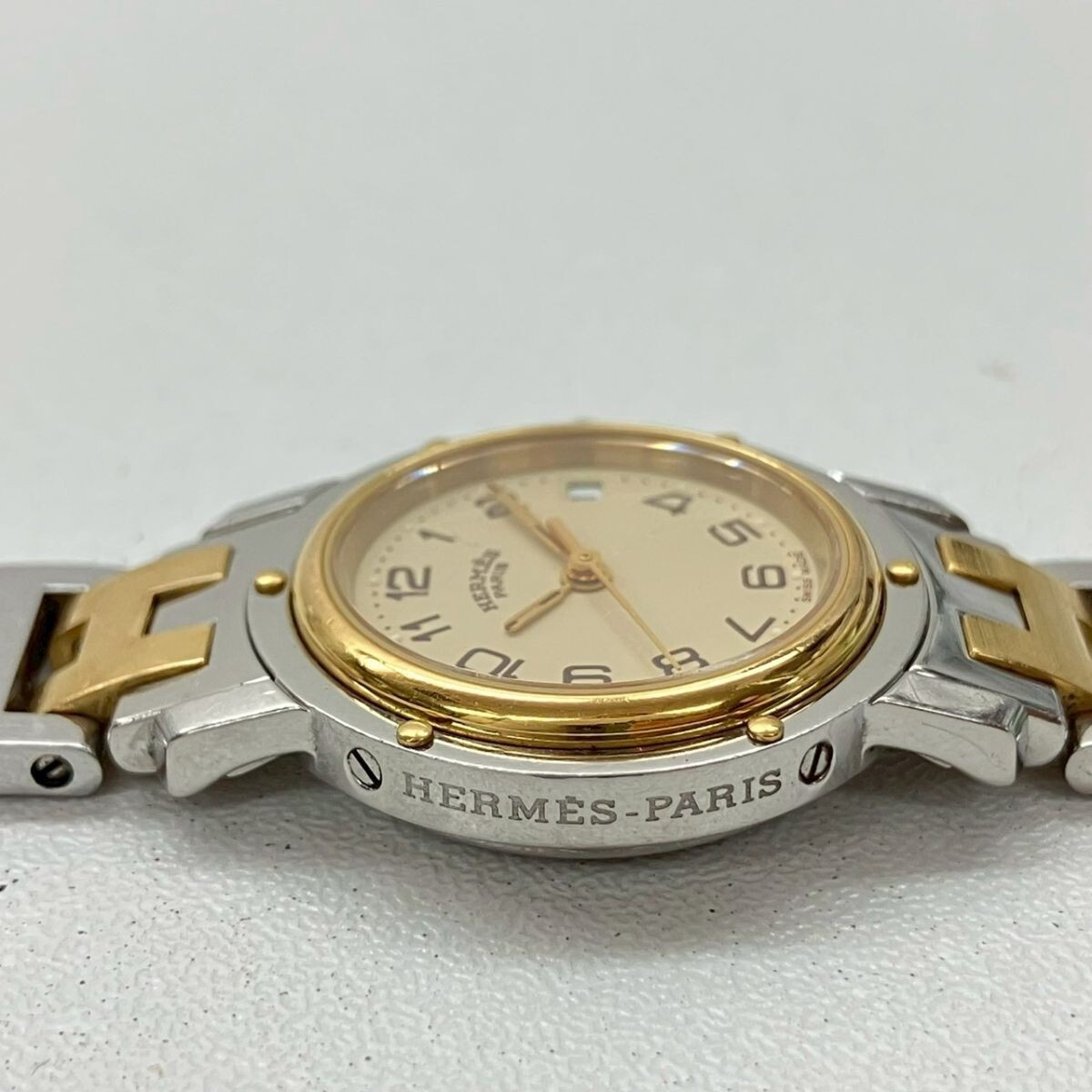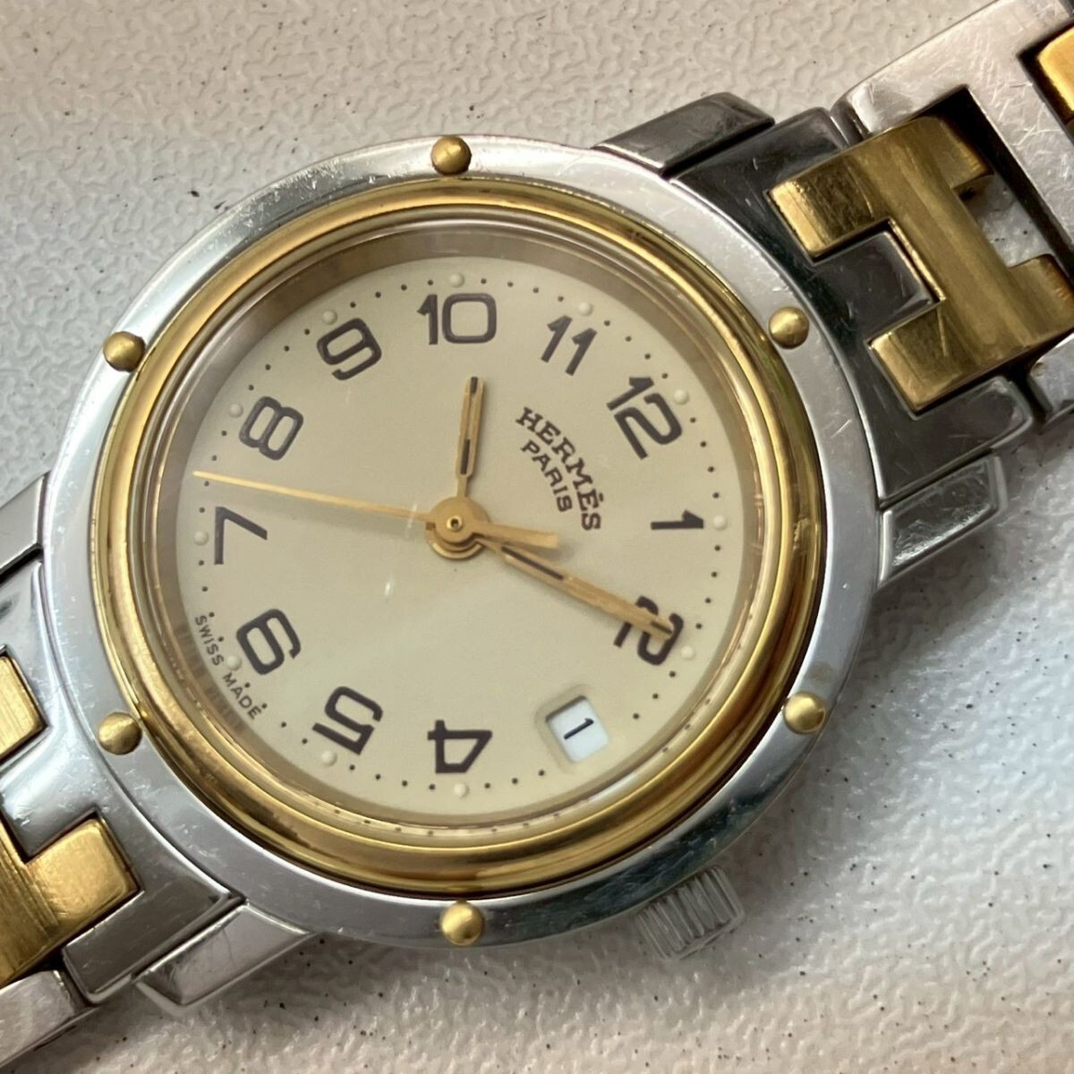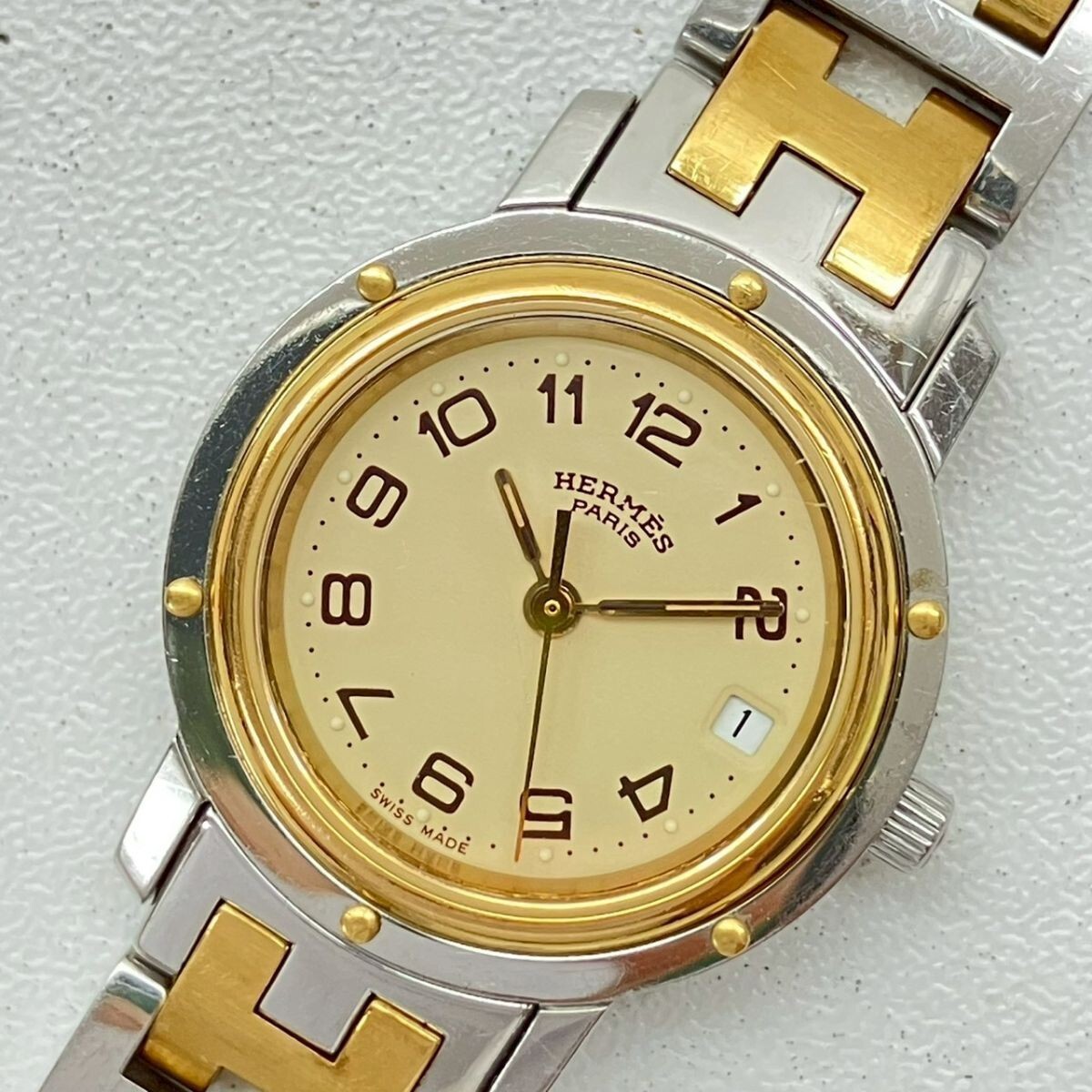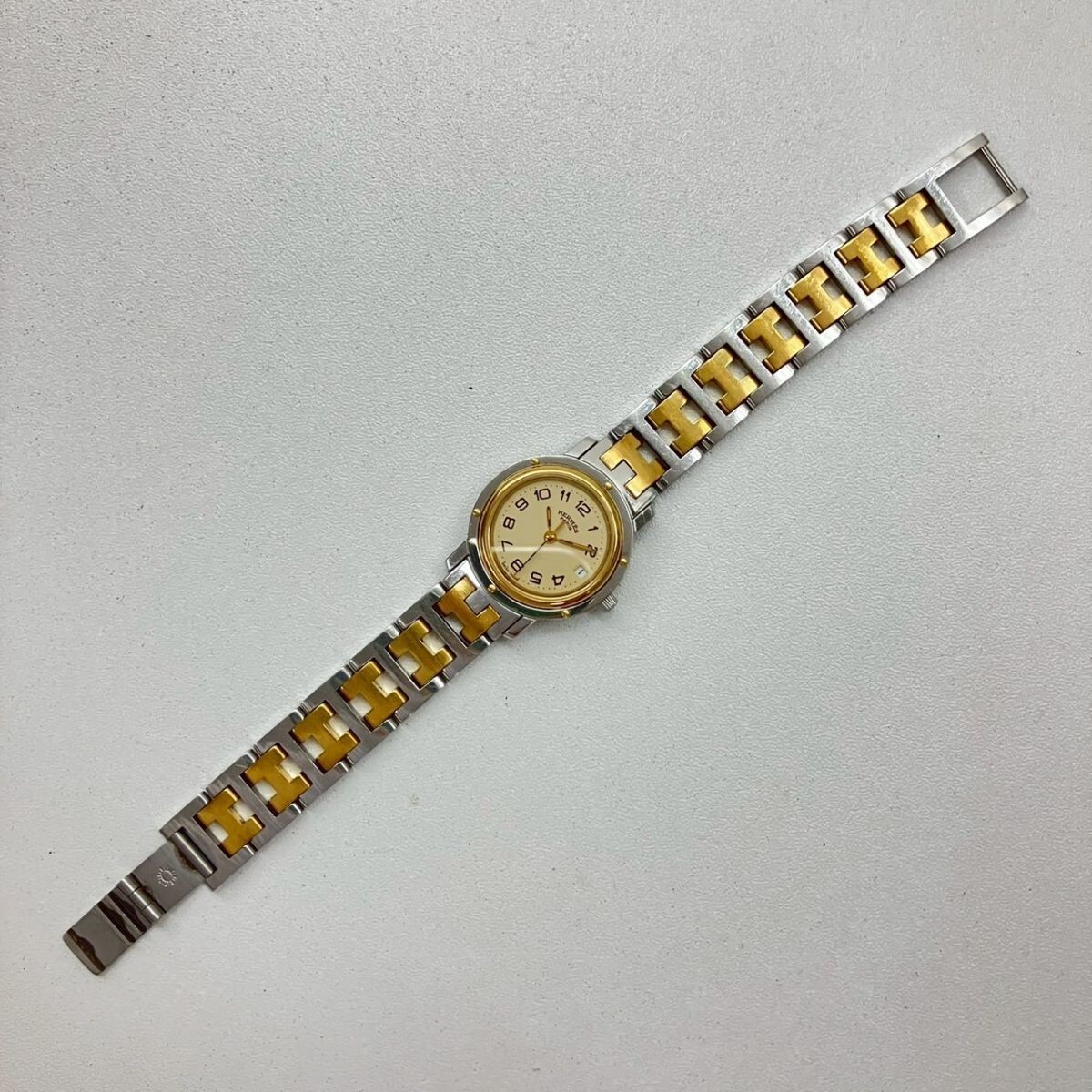 取り扱っている商品は未使用・未開封も含め、全て一度は人の手に渡った一点ものの中古・ジャンク扱いでの商品です。 当方素人ですので肉眼で確認できる簡易的な検品、採寸、および簡易梱包となります。 ※稼働の記載につきましては秒針等の確認のみとなり、全体の動作を保証するものではございません。 また、出品時の中古品の動作状況となりますので、予めご了承の上でご入札ください。 不動の表記につきましてはクォーツ式のムーブメントの場合、動作未確認の状態となります。 電池交換後、不具合があった場合でも返金、返品の対象とはなりませんので、予めご了承くださいますようお願い致します。 細かな日差、オーバーホール状況、社外パーツの使用に関しては保証しかねますので、ご理解いただけた上でのご入札をお願い致します。 上記を踏まえた上で中古品、ジャンク商品として出品させていただいておりますので、全てご理解いただけた上でのご入札をお願いいたします ------------------------------------------------------------------------- 【メーカー】 HERMES 【モデル名】 クリッパー 【型番】 CL3.240 【シリアル】 856384 【サイズ】 直径約2.4cm 腕回り約-cm(ベルト破損) 【付属品】 画像参照 【稼働状態】 稼働 【その他状態】 リューズ動作 時間:OK 日付:OK 曜日:- ------------------------------------------------------------------------- 画像にあるものが全てです。 他詳細は画像にてご判断ください。 ※目立つ傷や汚れを中心に写真を撮っておりますが、画像に写りきっていない傷等がある場合もございます。予めご了承ください。 ※商品を多数出品している関係で、稀に商品説明や画像に誤りがある場合がございます。予めご了承ください。 こちらのページをご覧いただく際は、商品説明文と掲載している画像の全てを確認いただいた上でご入札ください。 | |||||||