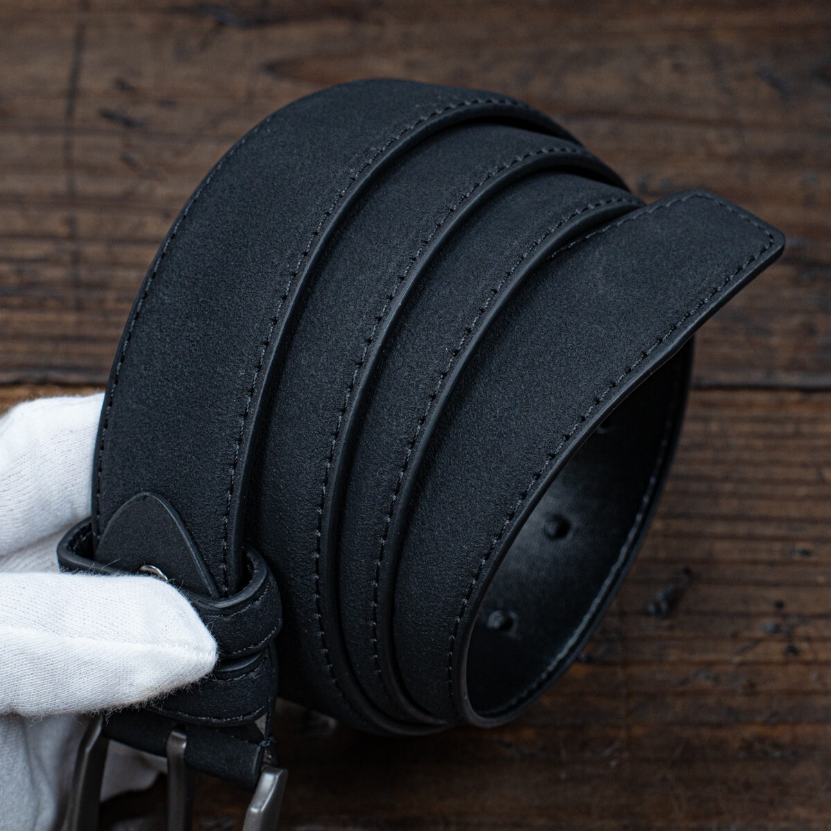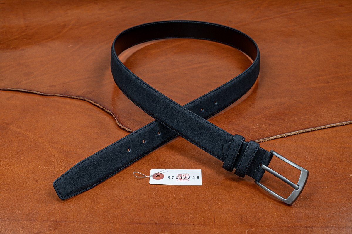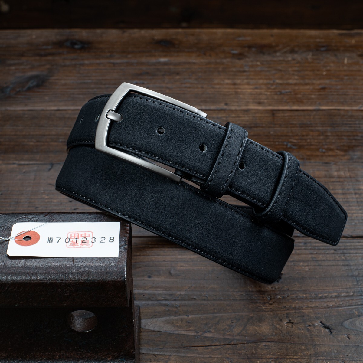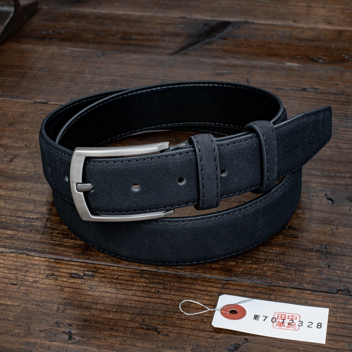 ディアスキン【鹿革】スエード メンズ 本革 ベルト 新品 未使用 送料無料 1円 レザー 天然皮革 上質 シンプル 黒 ブラック 田中革具