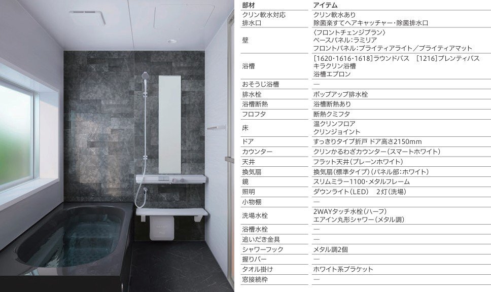 ◆キレイが長持ちする人工大理石浴槽のキラクリン浴槽。限られた空間でも心地よく入浴『プレンティバス』