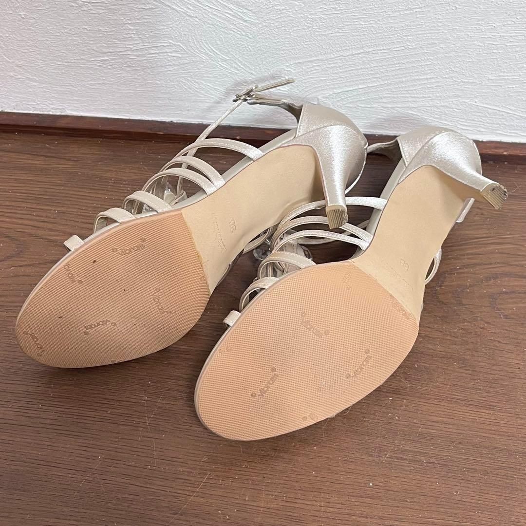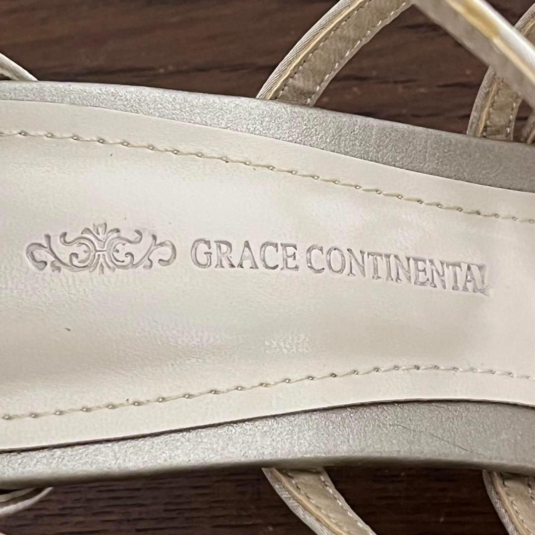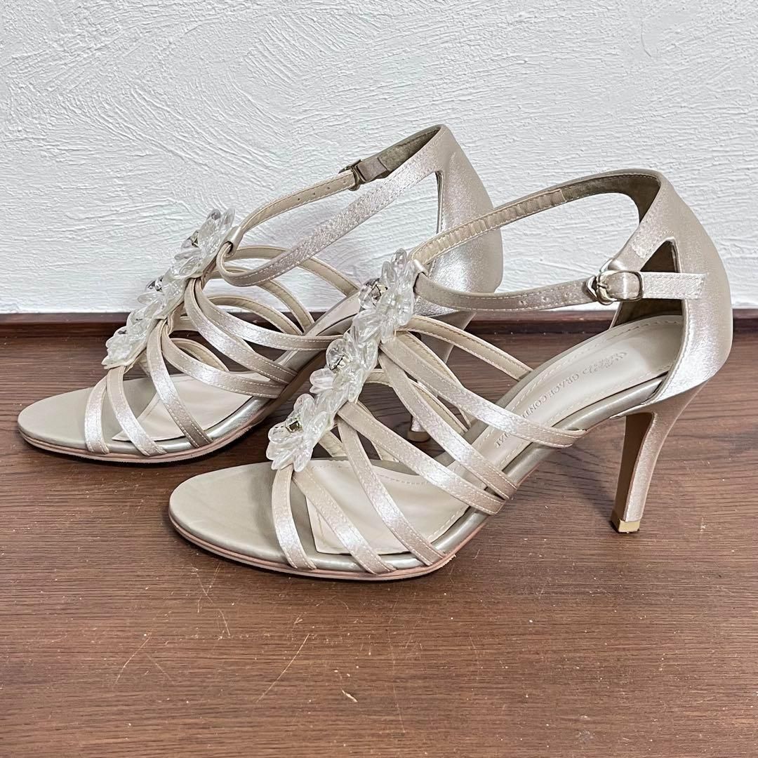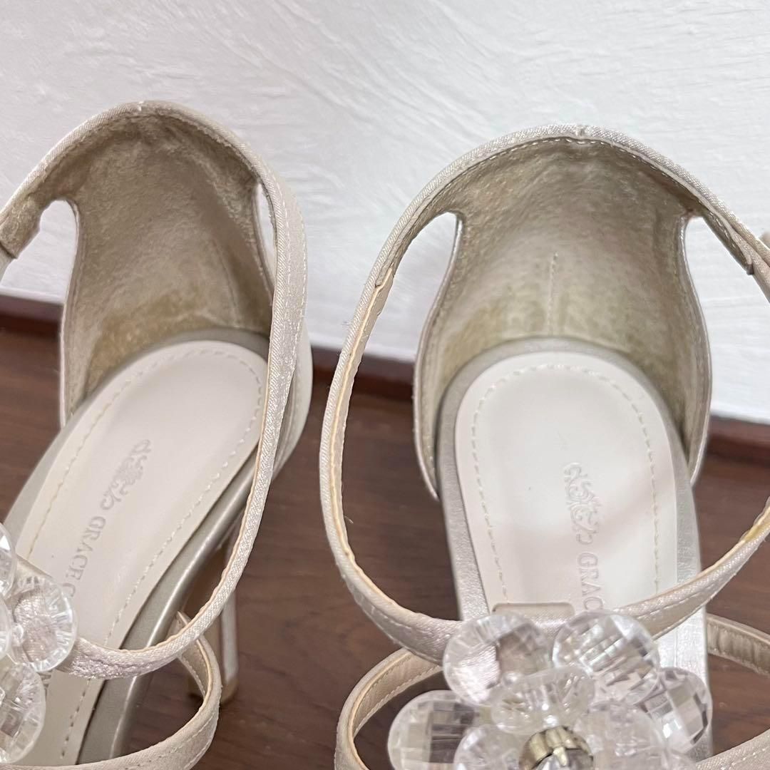 美品 グレースコンチネンタル GRACE CONTINENTAL ベージュ パーティ オケージョン ビジュー フラワー サンダル 38 レディース 4787