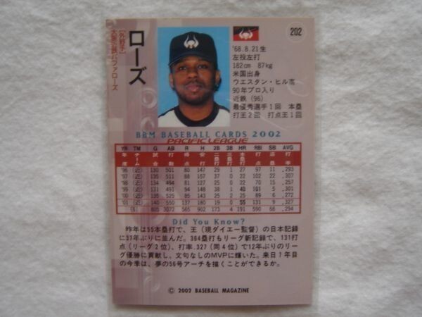 【BBM プロ野球カード 2002】No.202 ローズ 大阪近鉄バファローズ【トレーディングカード トレカ ベースボールマガジン社】