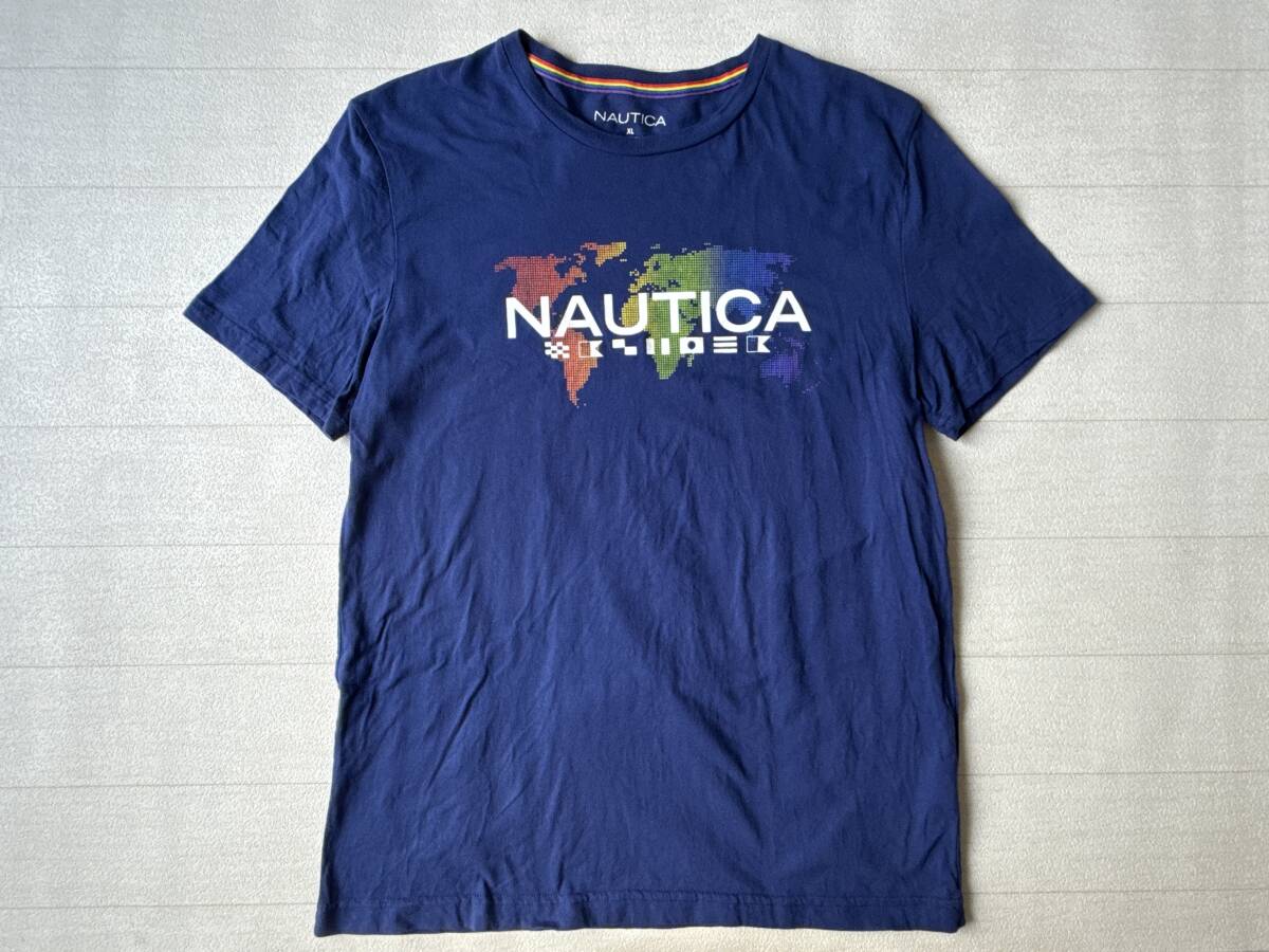 ☆送料無料☆ NAUTICA ノーティカ USA直輸入 古着 半袖 ロゴ Tシャツ メンズ XL ダークブルー トップス 中古 即決
