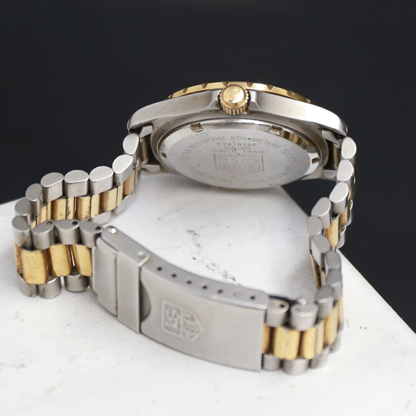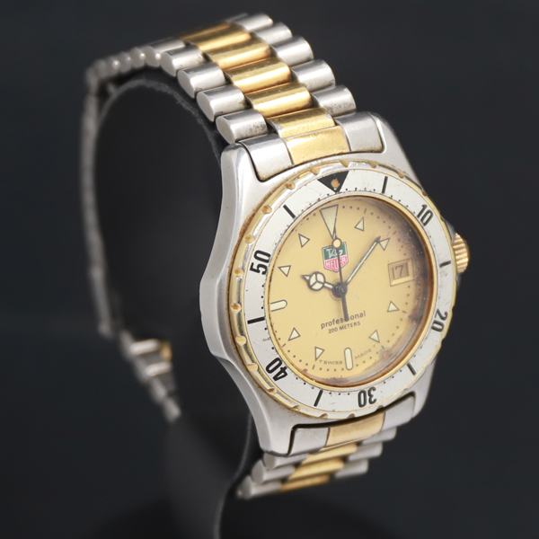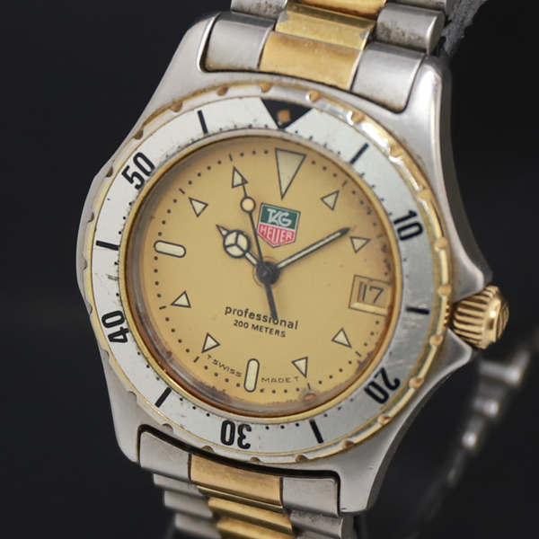1円 稼働 タグホイヤー QZ 974.013F プロフェッショナル200M ゴールド文字盤 デイト メンズ腕時計 5775000 9PRT KRK