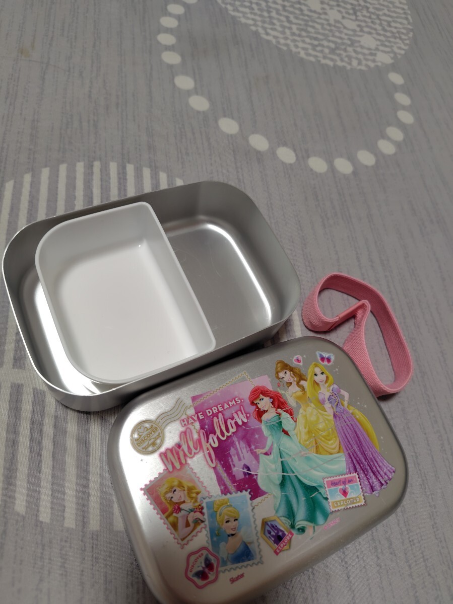 状態:表面傷あり。ゴムバンドに記名ありだったので塗りつぶしました。お弁当箱にも名前シール貼ってましたので取りました、ベタつきありです。