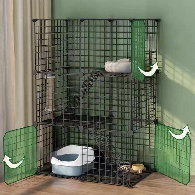 DIYでケージを作ることができ、追加の工具なしで自由に組み立てることができるので、自分のアイデアや自宅の様々なシーンやサイズに合わせて、満足のいく猫城を作ることができます。また、猫の大きさに合わせて、状況に応じて一段・二段のタイプを組み立てることができます。