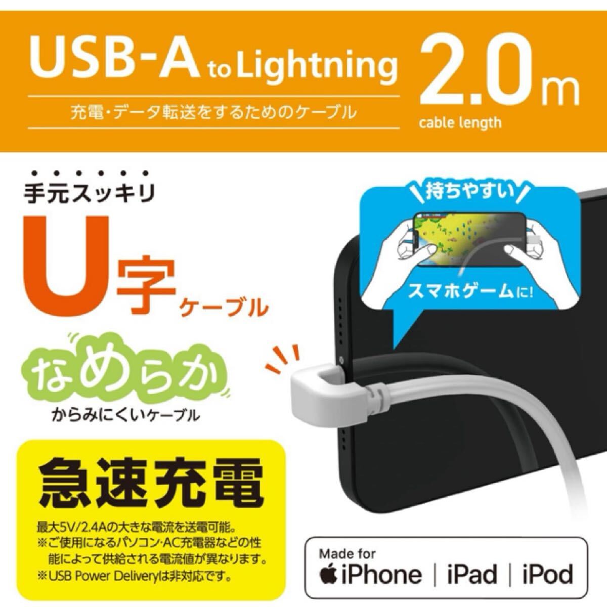 接続機器の背面にケーブルを配線できる、U字コネクターを採用したシリコン素材のLightningケーブルです。