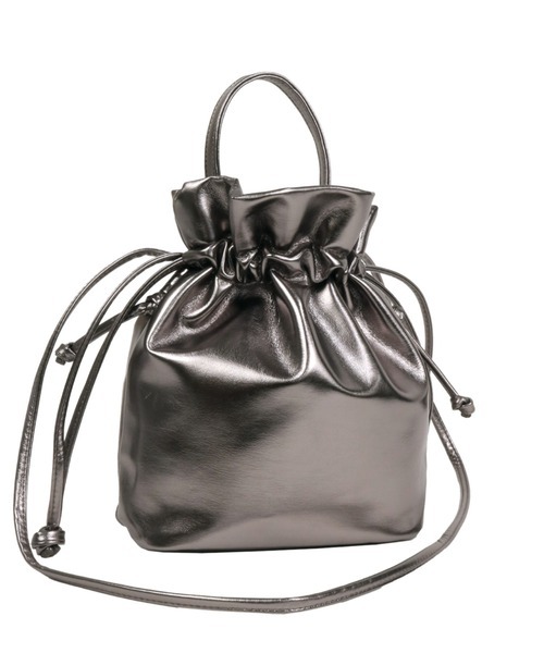 新品 メタリック巾着2WAYショルダー ガンメタ aristella