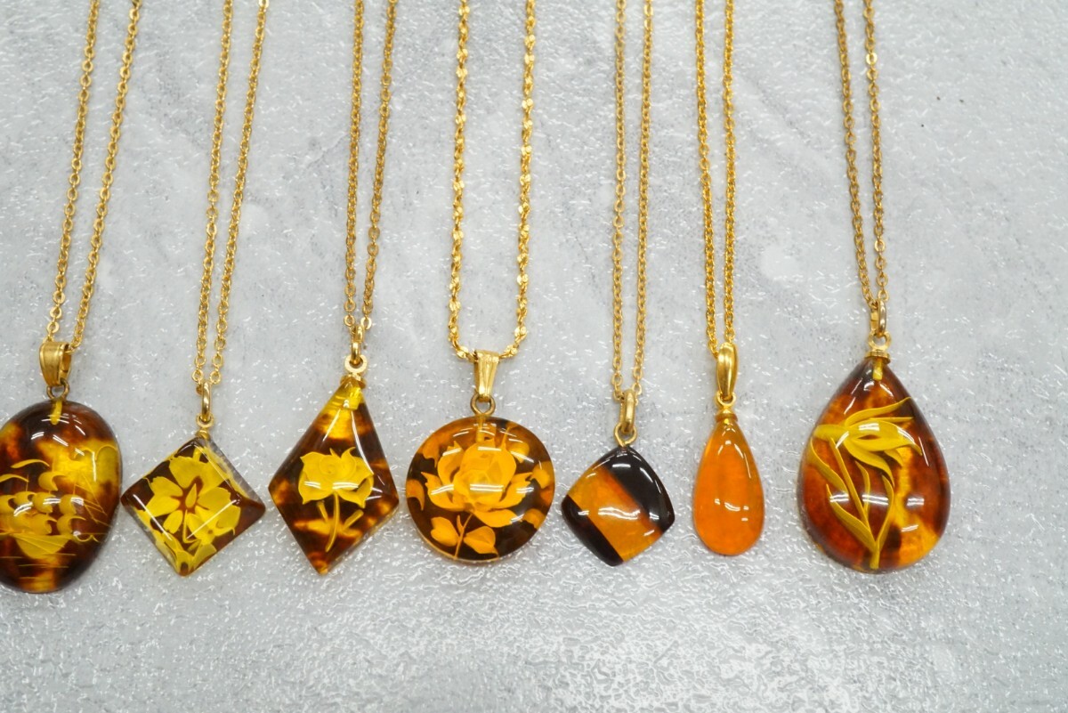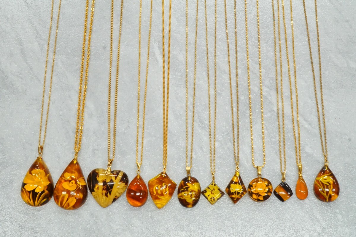 C415 本鼈甲 べっ甲 ゴールドカラー ネックレス ペンダント 12点セット ヴィンテージ アクセサリー 大量 まとめて おまとめ まとめ売り