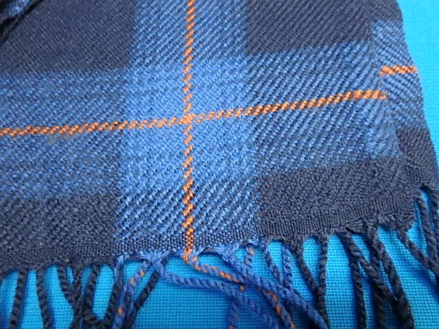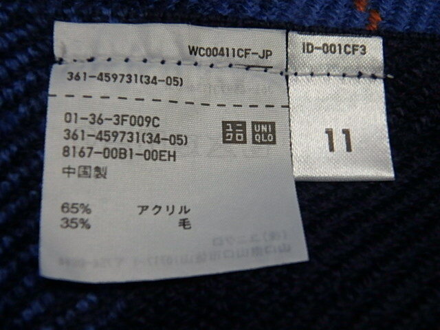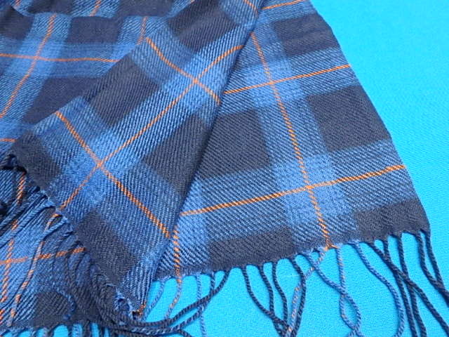 nk16-25-0929-2 ユニクロ ヒートテック マフラー 紺/オレンジ チェック柄 メンズ レディース 男性用 女性用 459731 中古