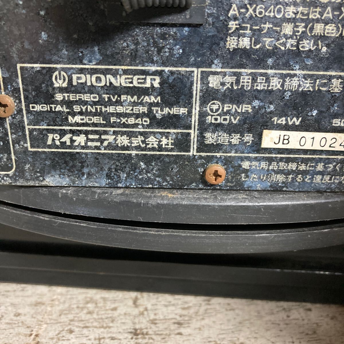 MYM10-194 激安 PIONEER STEREO TV・FM/AM DIGITAL SYNTHESIZER TUNER F-X640 通電、電源オン、オフOK 中古現状品 ※3回再出品で処分