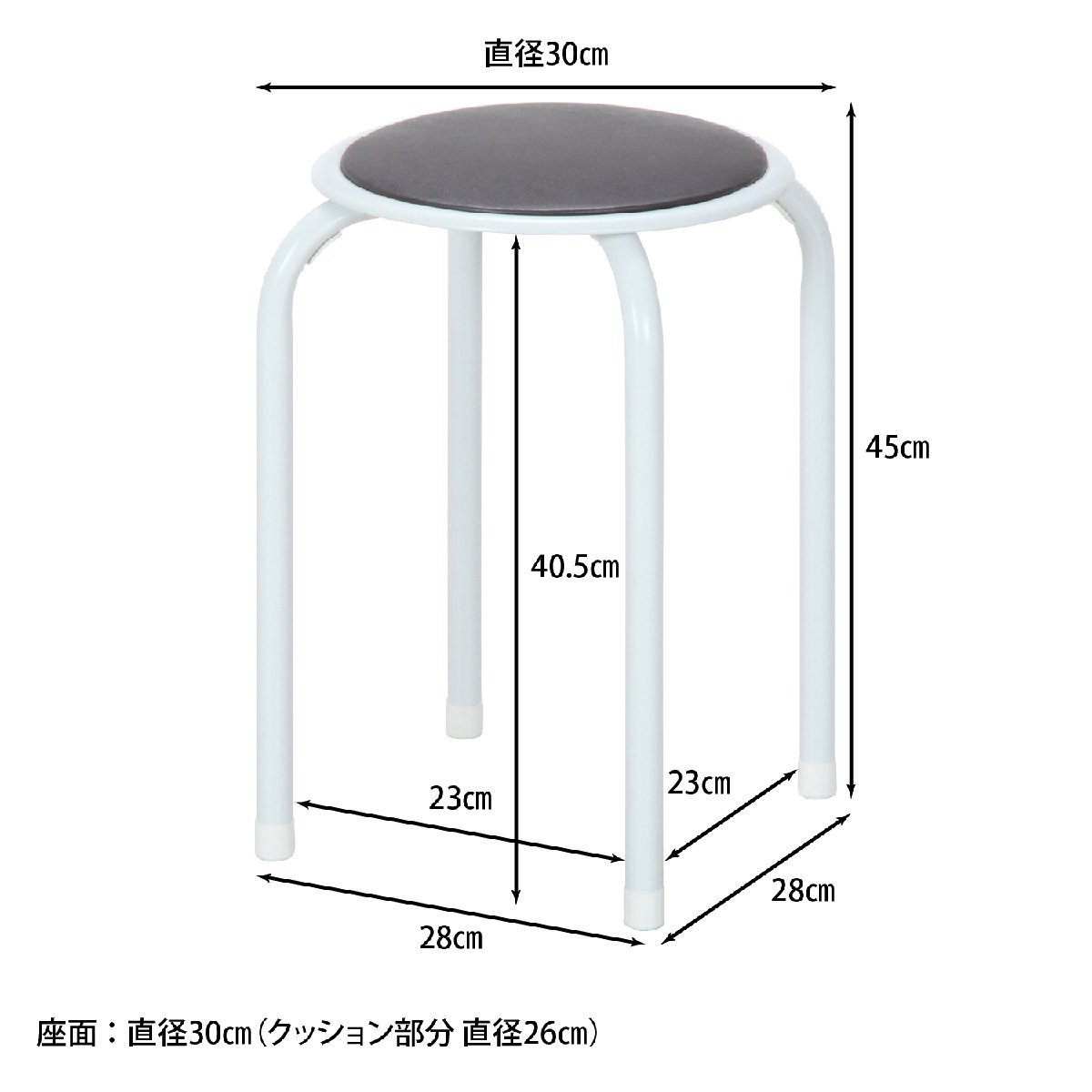 サイズ | 全体:幅300 × 奥行300 × 高さ450mm × 12脚 座面高:450mm 耐荷重(座面):80kg 座面直径:300mm 座面クッション直径:260mm 脚部鉄厚:1mm ※詳細はサイズ画像をご確認ください。 |