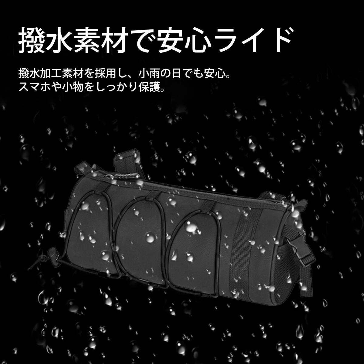 | 取り付け手順 | 【防水仕様で安心ライド】:斜紋生地&圧着防水ジッパーを採用し、雨や泥はねから中身をしっかりガード。突然の天候変化にも安心して走行できます。 【しっかり固定できるマジックテープ式】:ハンドル径に合わせて長さ調整可能なマジックテープで、振動の多い山道でもバッグがズレにくく、安定した装着感を実現。 【小型&軽量デザイン】:丸みのあるフォルムとコンパクトサイズで邪魔にならず、ロードバイクやMTBにぴったり。取り外せば斜め掛けバッグとしても活躍します。 【多ポケット&収納力抜群】:スマホ、鍵、財布、工具などを整理できる仕切り付き。さらに外側のバンジーコードで雨具やボトルも固定可能。 【アウトドアから通勤まで幅広く活躍】:サイクリング、ツーリング、登山、通勤ライドなど、様々なシーンで役立つ万能自転車アクセサリー。 |