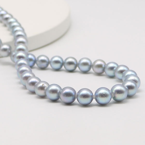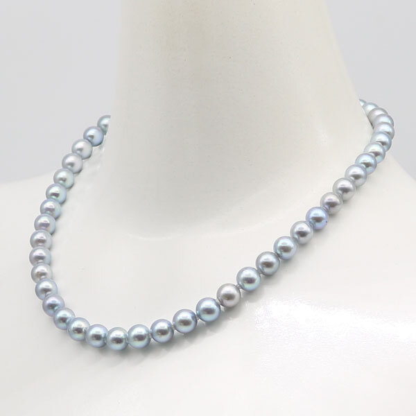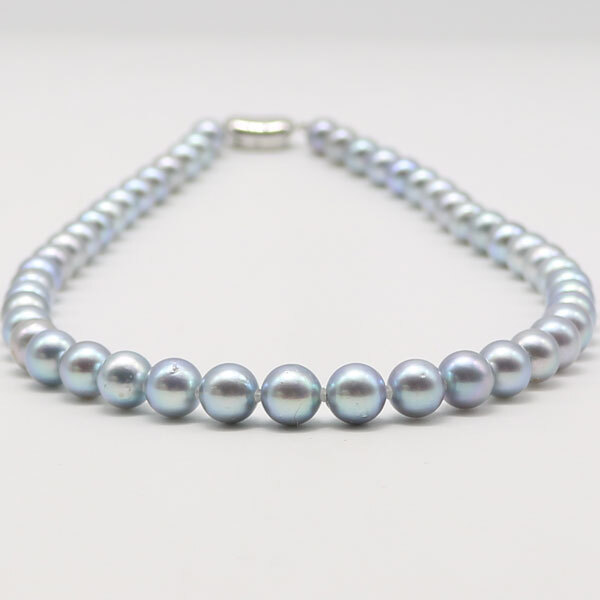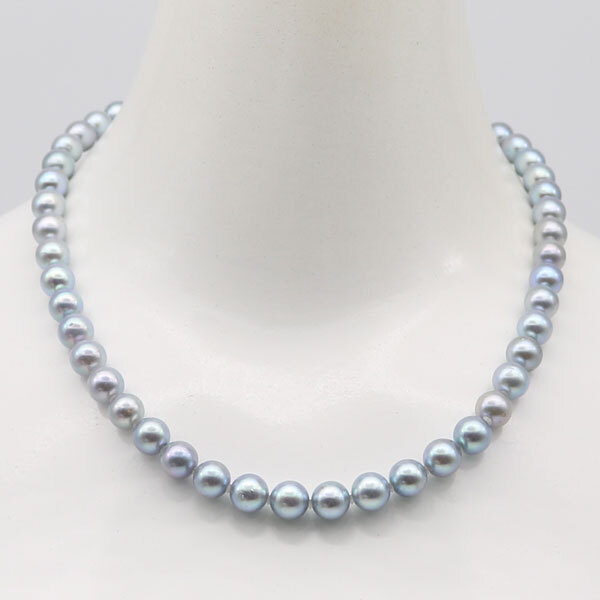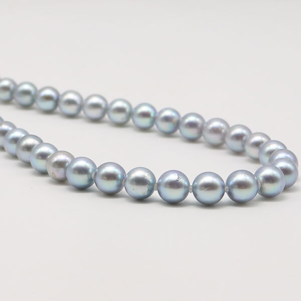 アコヤ真珠8mm-8.5mmブルーグレーパールネックレスです。ブルーグレー基調で日本産アコヤ真珠ならではの上品で清楚な輝きをしています。 |