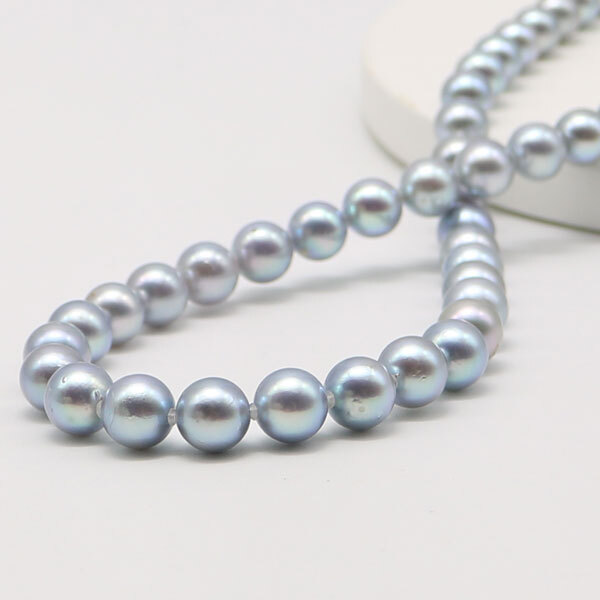 日本産あこや真珠の人気のサイズの大きさのパールで、人気のブルーグレーパールネックレス。 | |||
