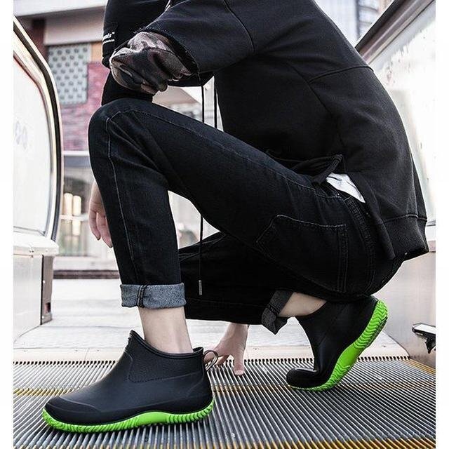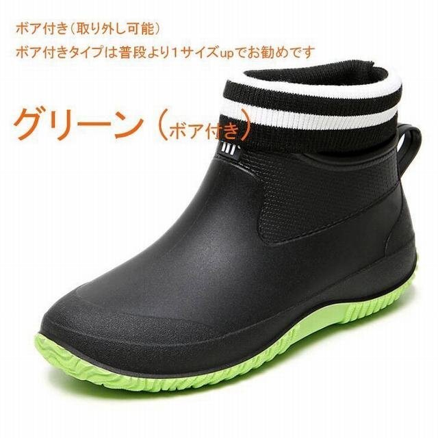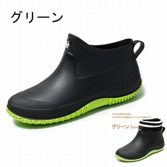 レインシューズ レインブーツ 完全防水 滑り止め 男女兼用 ショートブーツ ボアインナー無し タイプ グリーン27cm