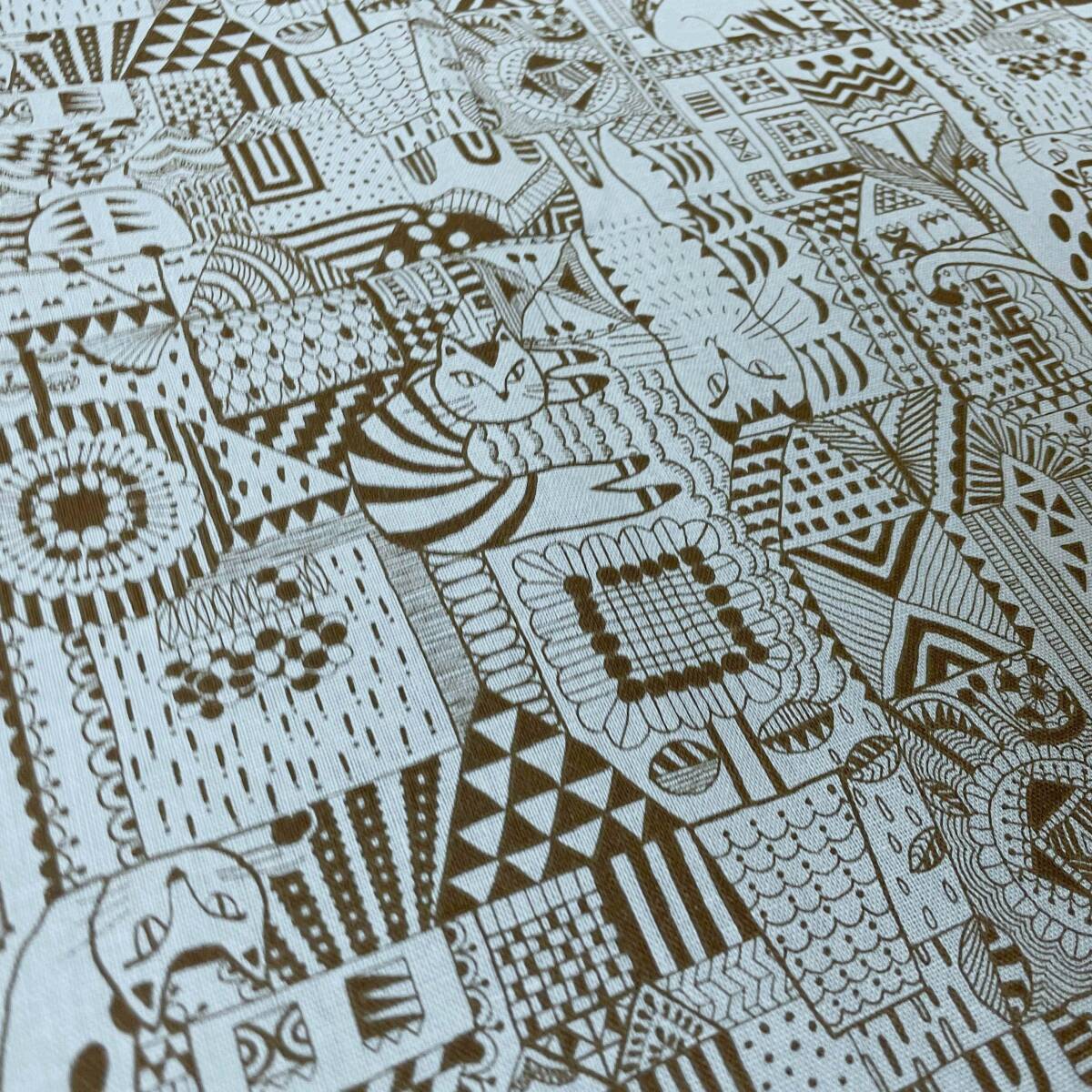 50c綿麻キャンバスisso ecco生地はぎれ布ネコと家★猫ねこ北欧デザイン