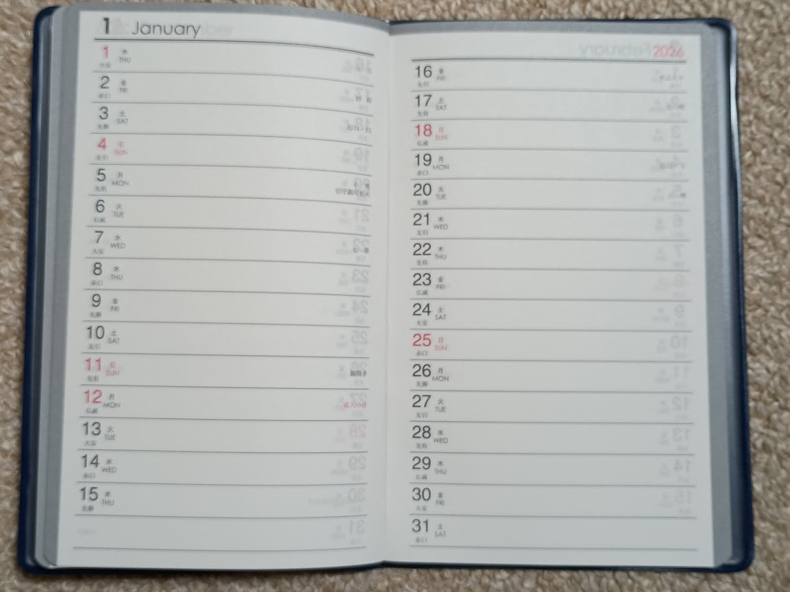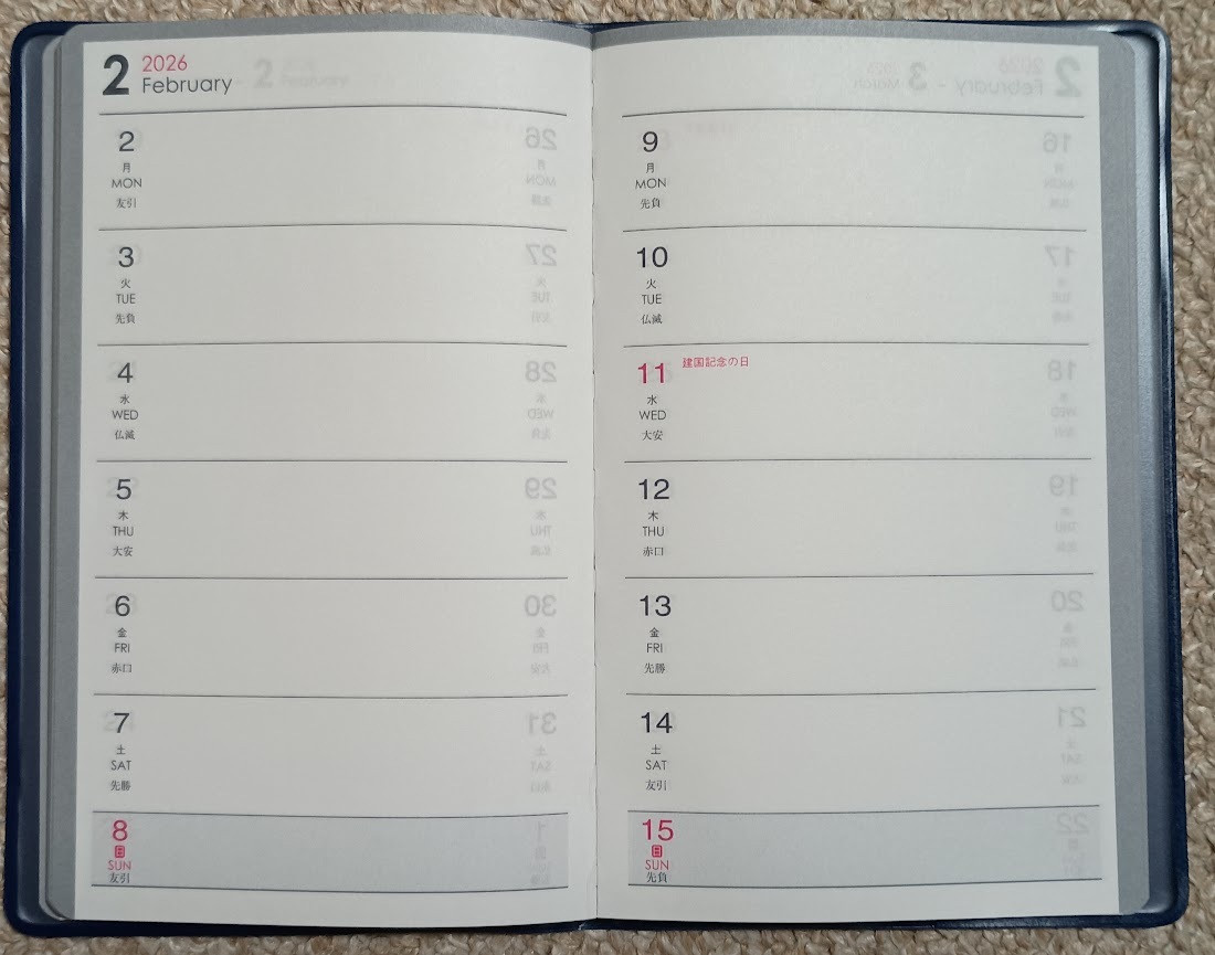 ・左右に週の月~日曜までスケジュールが書けます:2週間