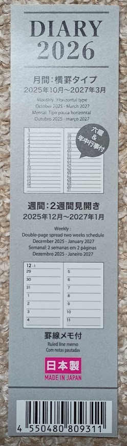 10月始まり ポケットサイズ 手帳 スケジュール帳