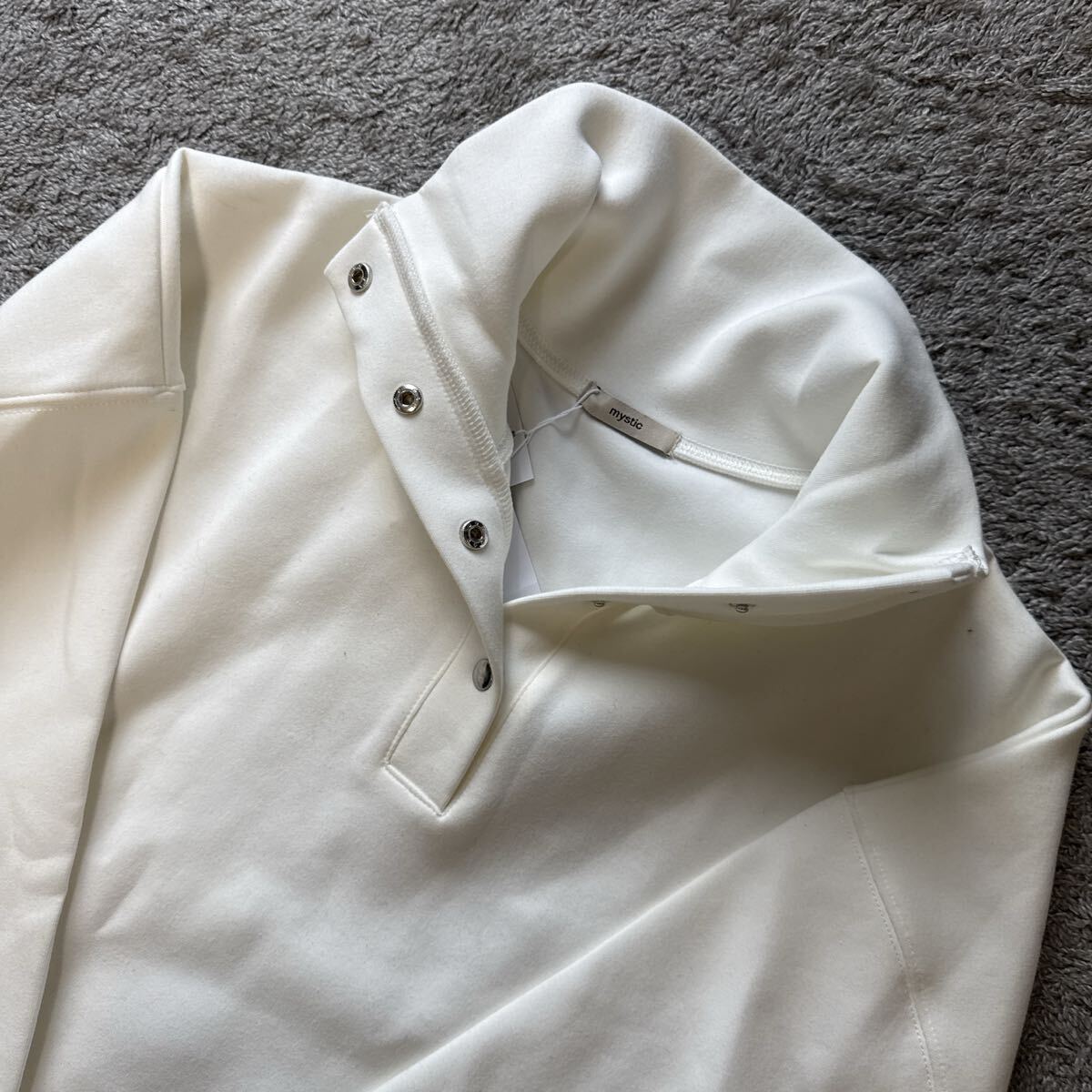 mystic ポンチハーフスナッププルオーバーオフ白です。 未使用タグ付きです。 自宅保存なので細かい事を気になさる方は ご入札を避けて下さいね♪ サイズはFサイズです。 平置きで身幅68センチ 着丈47センチ 素人なので多少の差はご了承ください。 品質は綿68% ポリエステル29% ポリウレタン3%です。 実際のお色と画像は光の具合により 多少異なる場合があります。 | |||