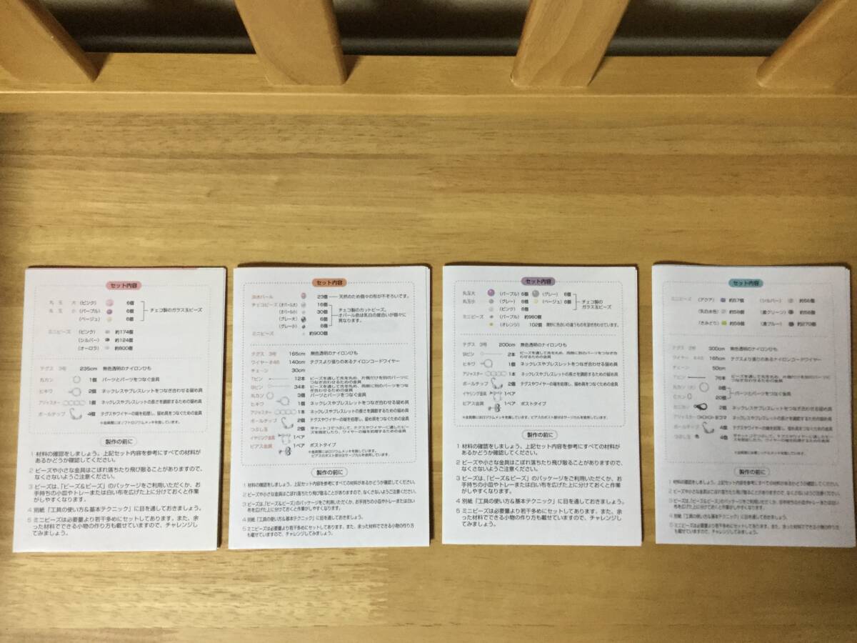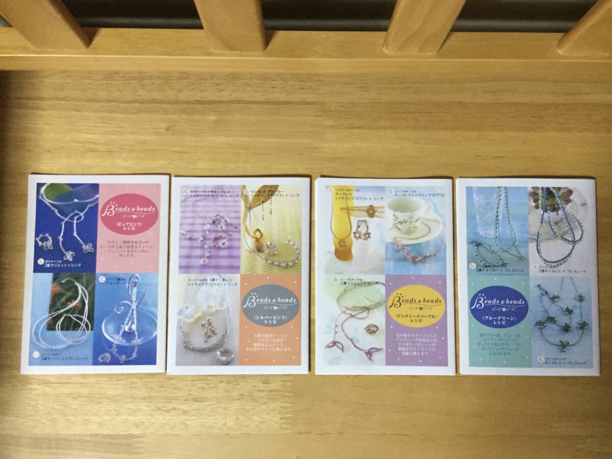千趣会/ベルメゾンのマンスリークラブで購入したビーズアクセサリーキット、「Beads & beads / ビーズ&ビーズ」シリーズ4種をセットで出品します。3通りのレシピがついていてお好きなアイテムを作ることができるのと、それぞれのレシピで余った材料でできる小物&アレンジレシピも付いています。いかがでしょうか。