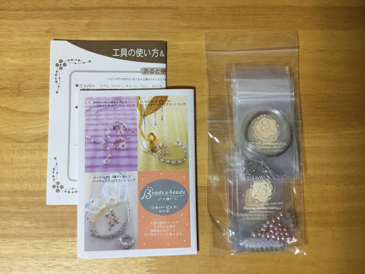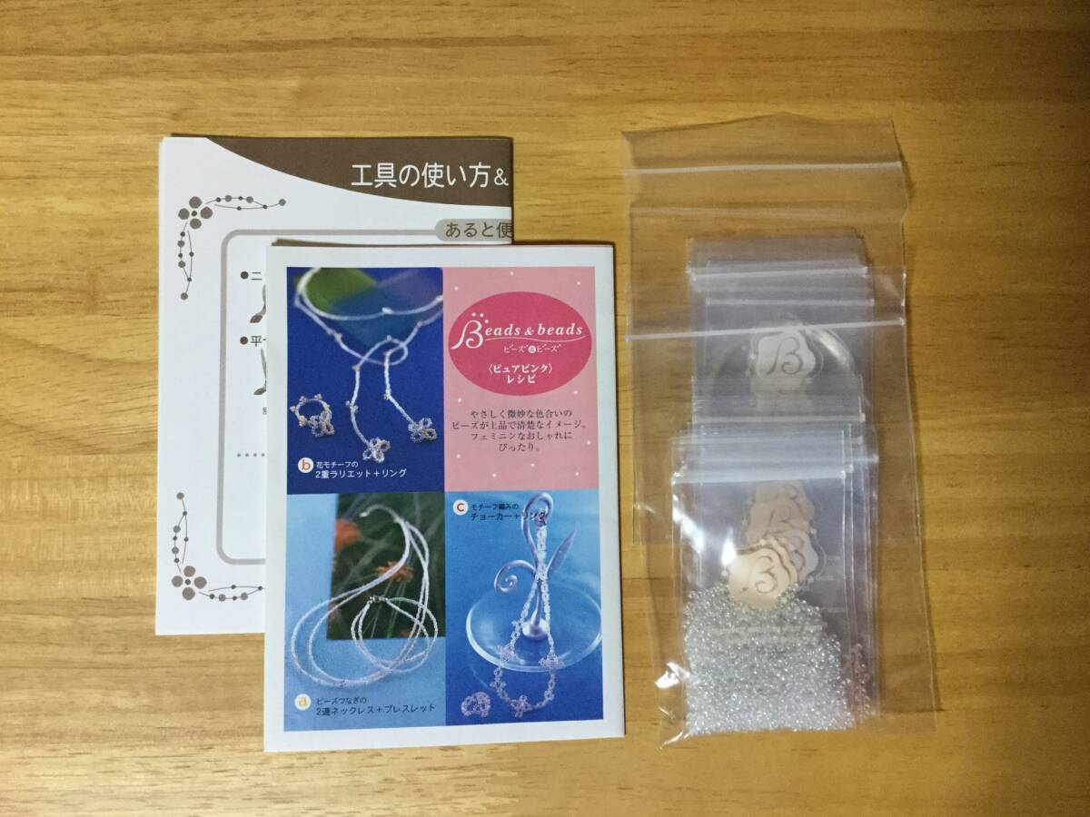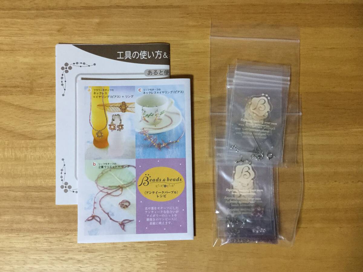 ●アイテム:マンスリークラブ ビーズアクセサリー作成キット 「Beads & beads / ビーズ&ビーズ」 4種(アンティークパープル、ピュアピンク、シルバーピンク、ブルーグリーン)  パーツ/レシピ/工具の使い方シート/外箱なし