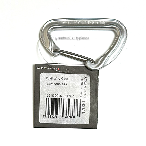 マムートのカラビナ「Wall」 、ワイヤーゲートタイプです。カラーは画像のとおりです。