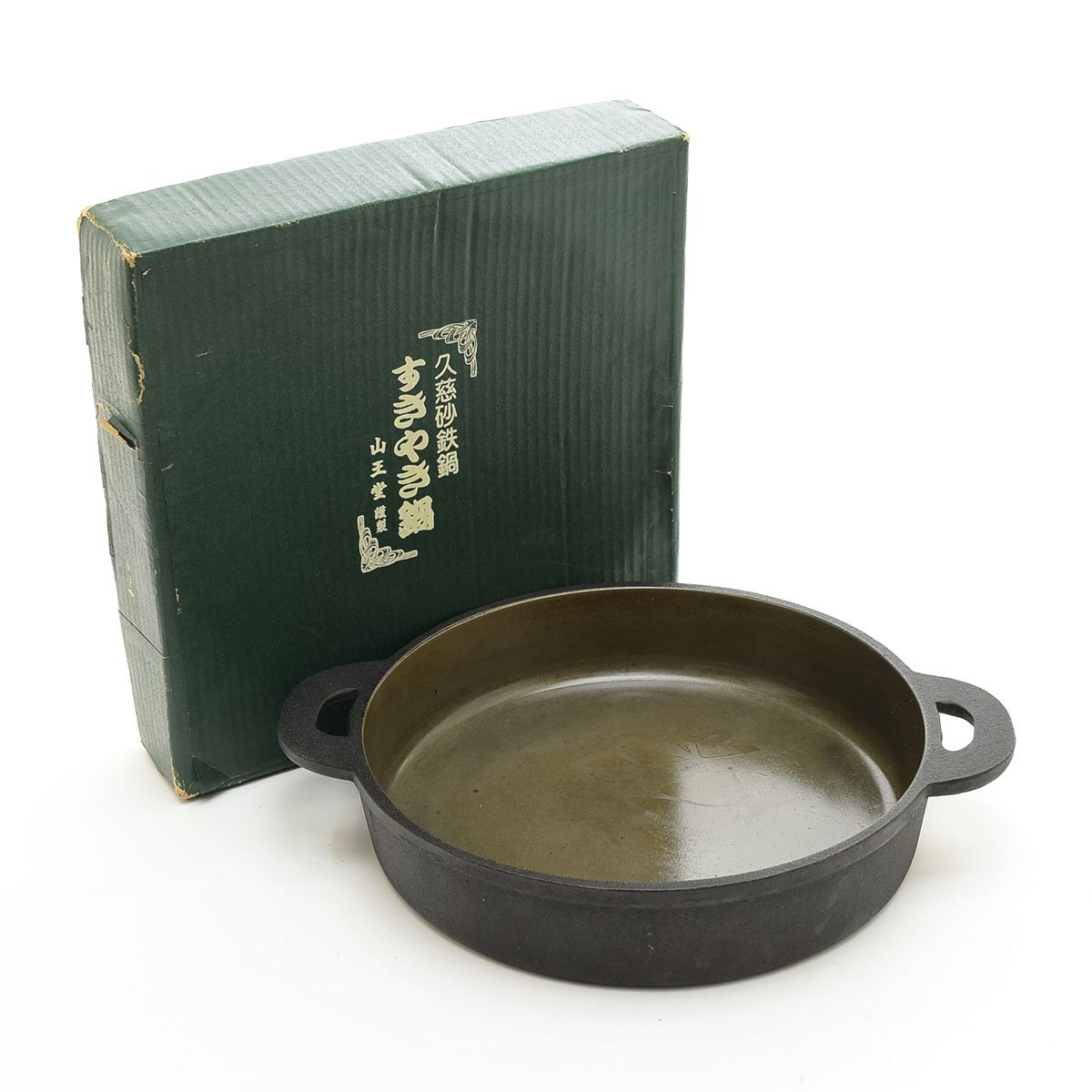 ◎553159 山王堂謹製 久慈砂鉄鍋 すきやき鍋 直径28.5cm 箱入(ダメージあり) 特上砂鉄鉄器