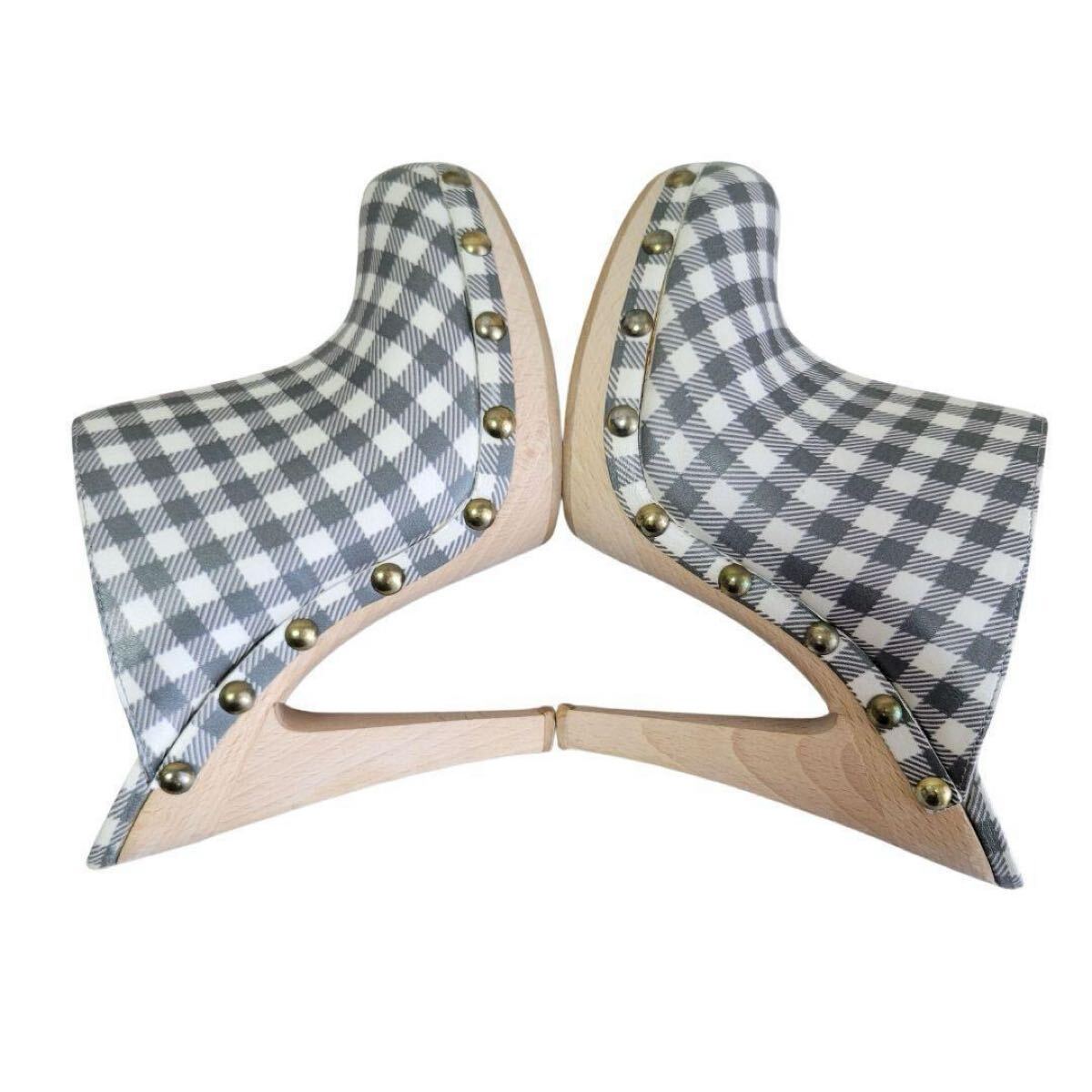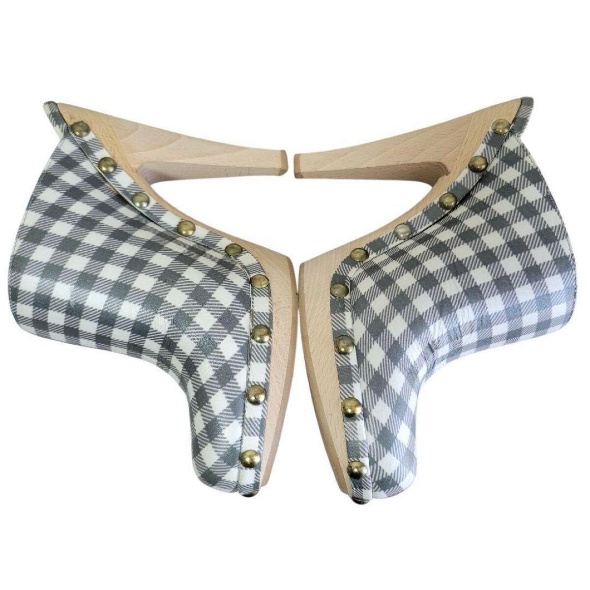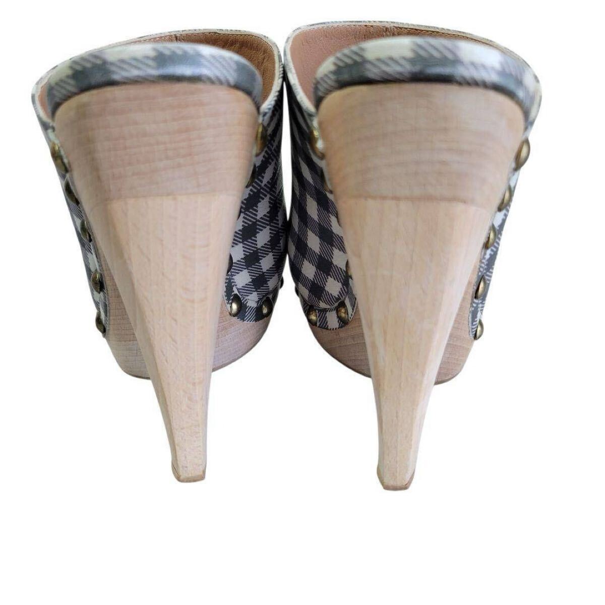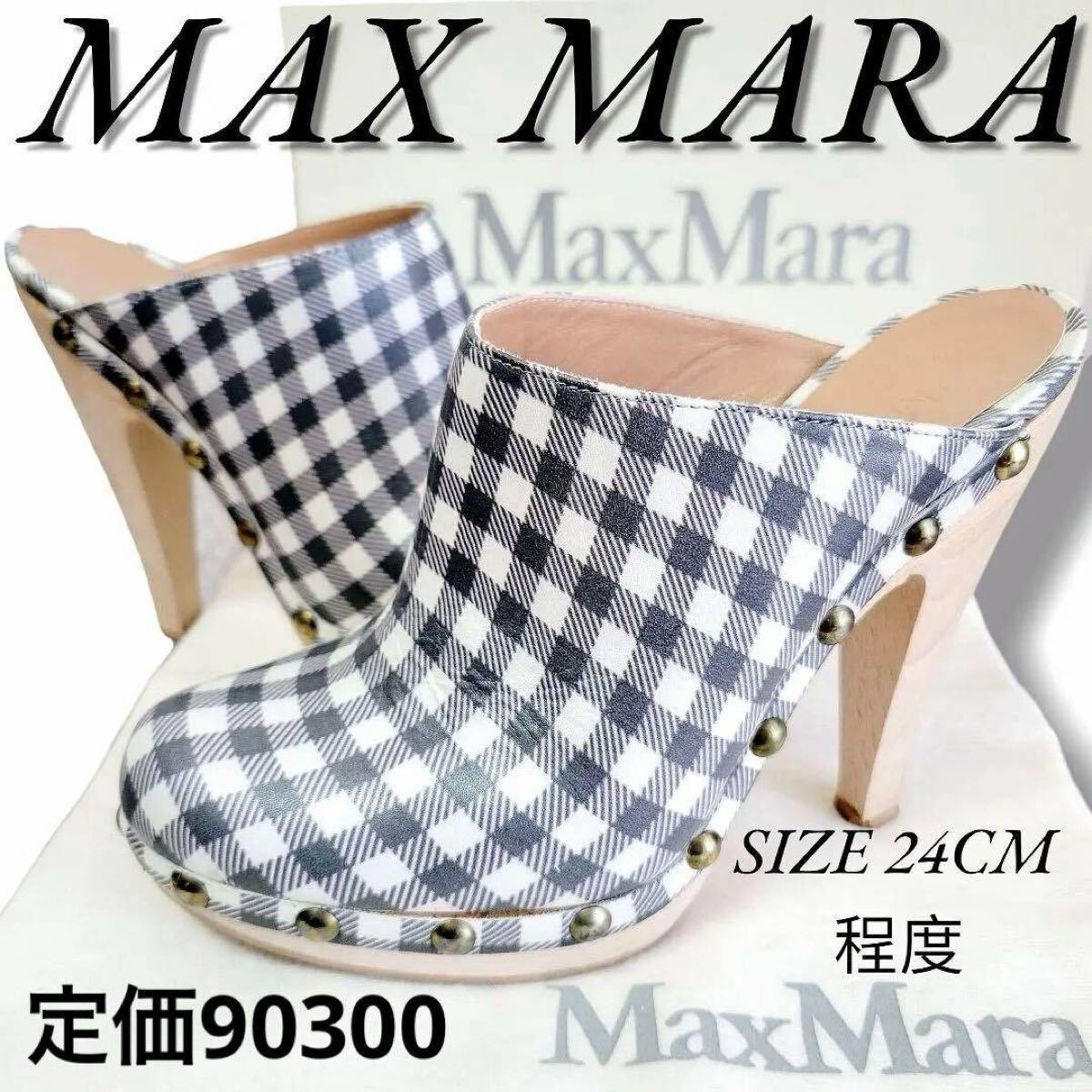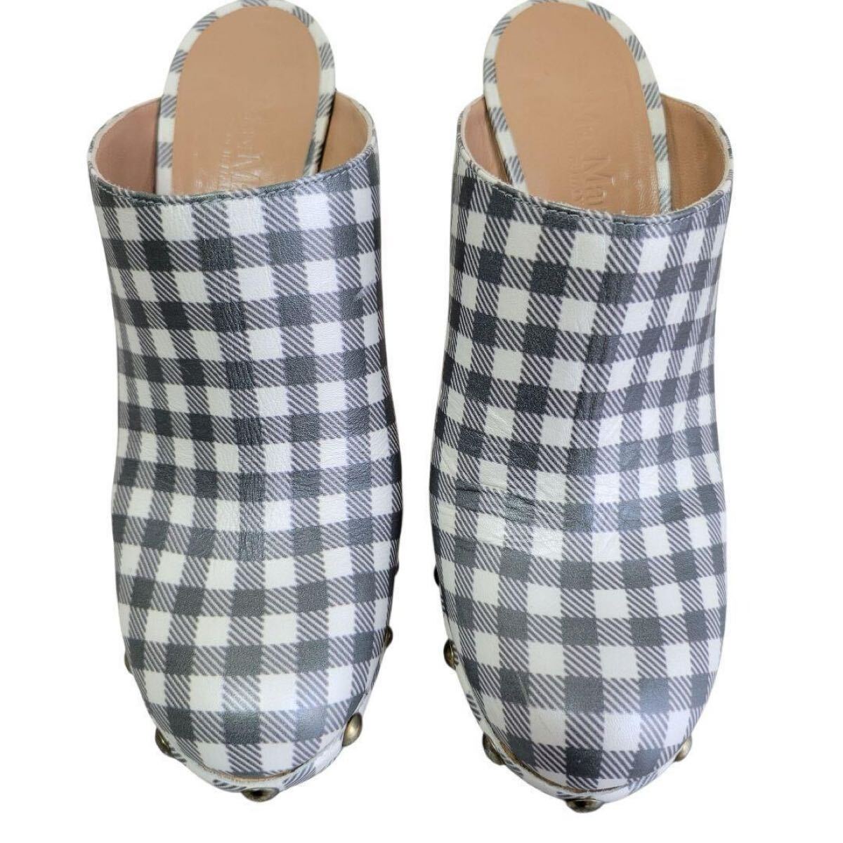 極美品 マックスマーラ ギンガムチェック スタッズ 木製ミュール MAX MARA レザー 牛革
