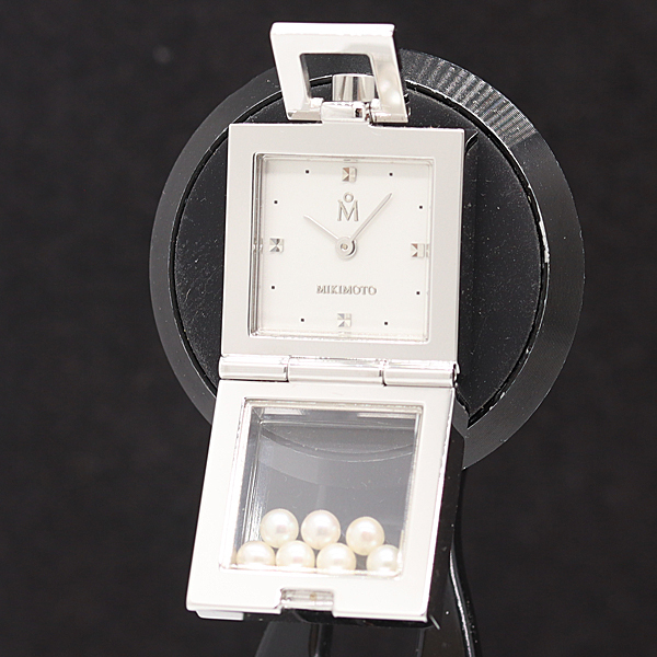 1円 稼働 良品 ミキモト パール付き ホワイト文字盤 QZ ペンダントウォッチ 2000000 8NBG2 KTS