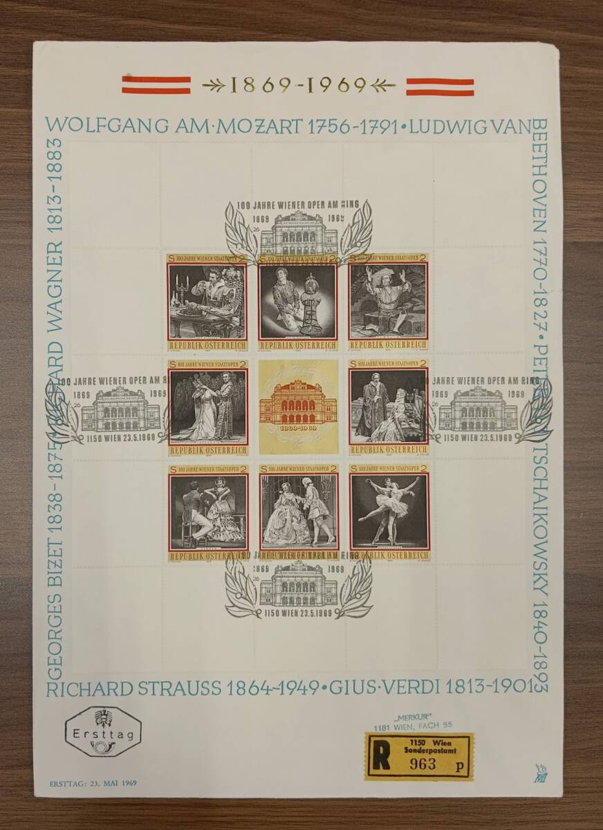 外国 初日カバー(FDC) オーストリア 1969年「ウィーン国立歌劇場100周年記念」