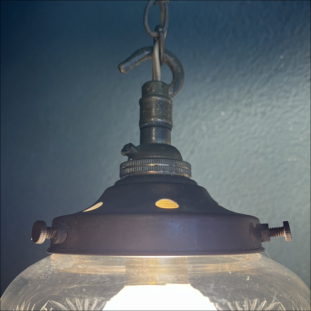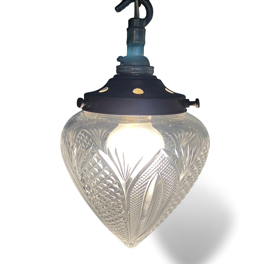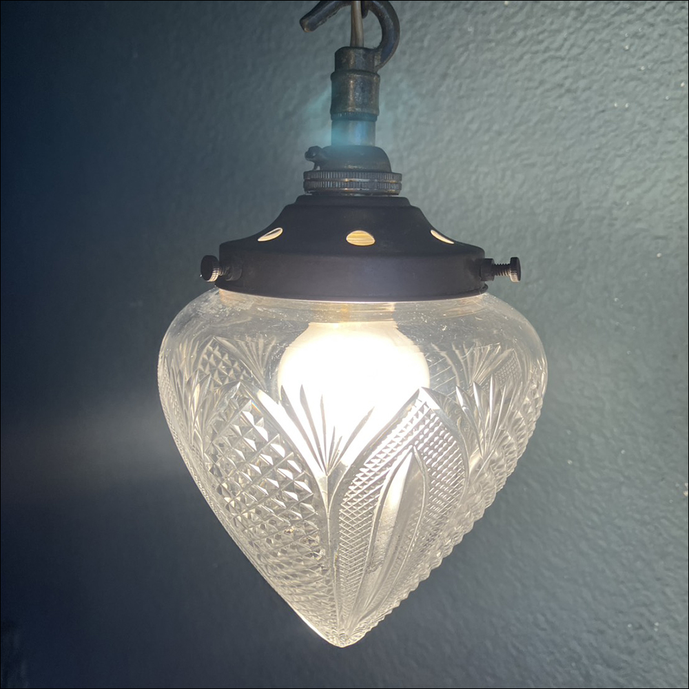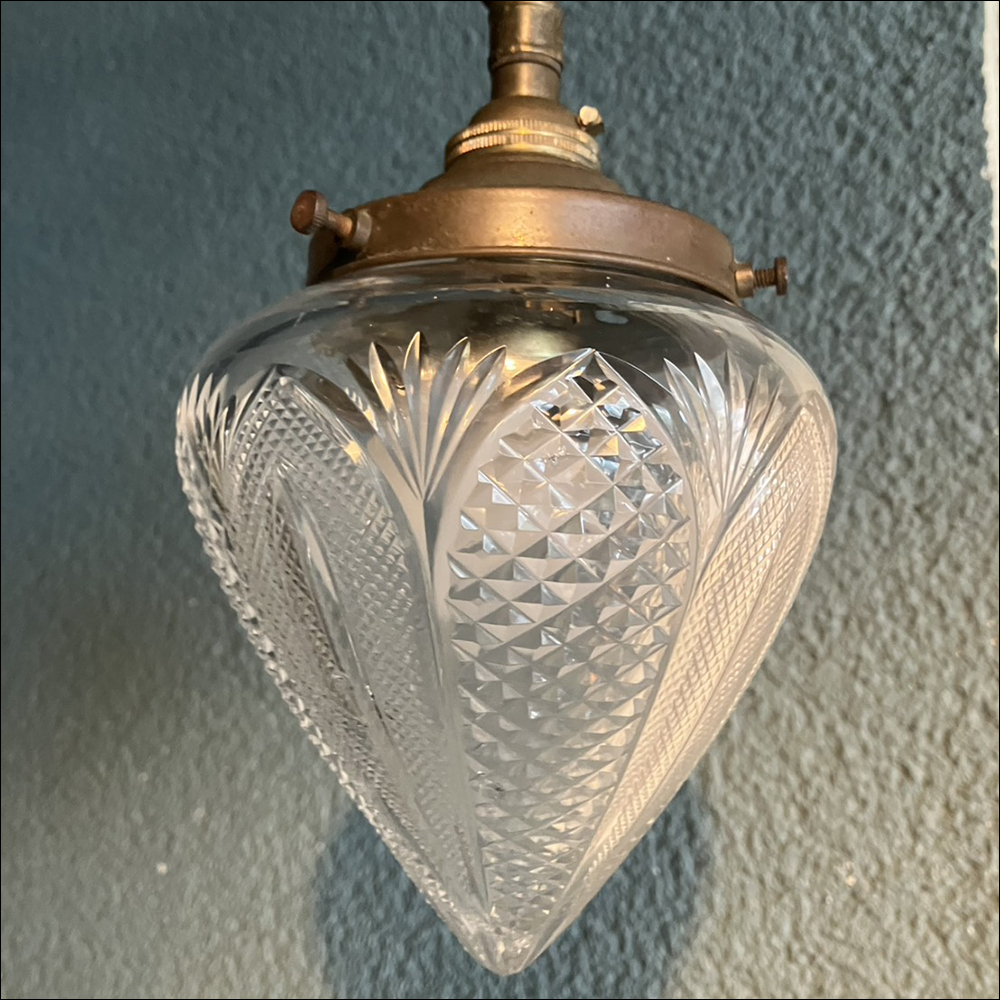 カットガラスのシェードが特徴的なUKペンダントライトです。 USEDのためキズ/スレ/錆など使用感があり 先端に小さな欠けがあるなど傷みもありますのでご了承ください。 (※基本的に電球は付属しません。) ※動作確認をした上で使用に関しましては問題無いと思いますが ヴィンテージ、アンティーク商品などの為、使用に伴う事故や 故障に関しましては一切の責任は保証致しません事をご了承下さい。 【 Size(約):W12 H17 D12cm 】 ≪月・火以外の13:00~19:00で直接お渡しも可能です。≫(東京町田市)