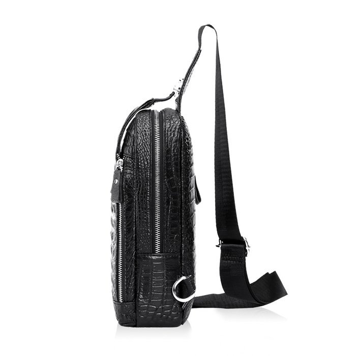 ■ レザー クロコダイル柄 メンズ ショルダー クロスボディ チェストバッグ。