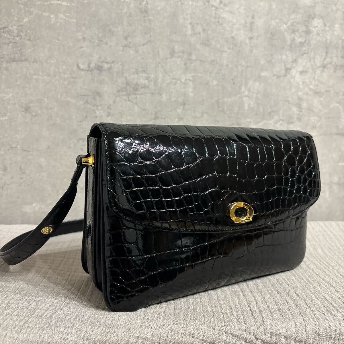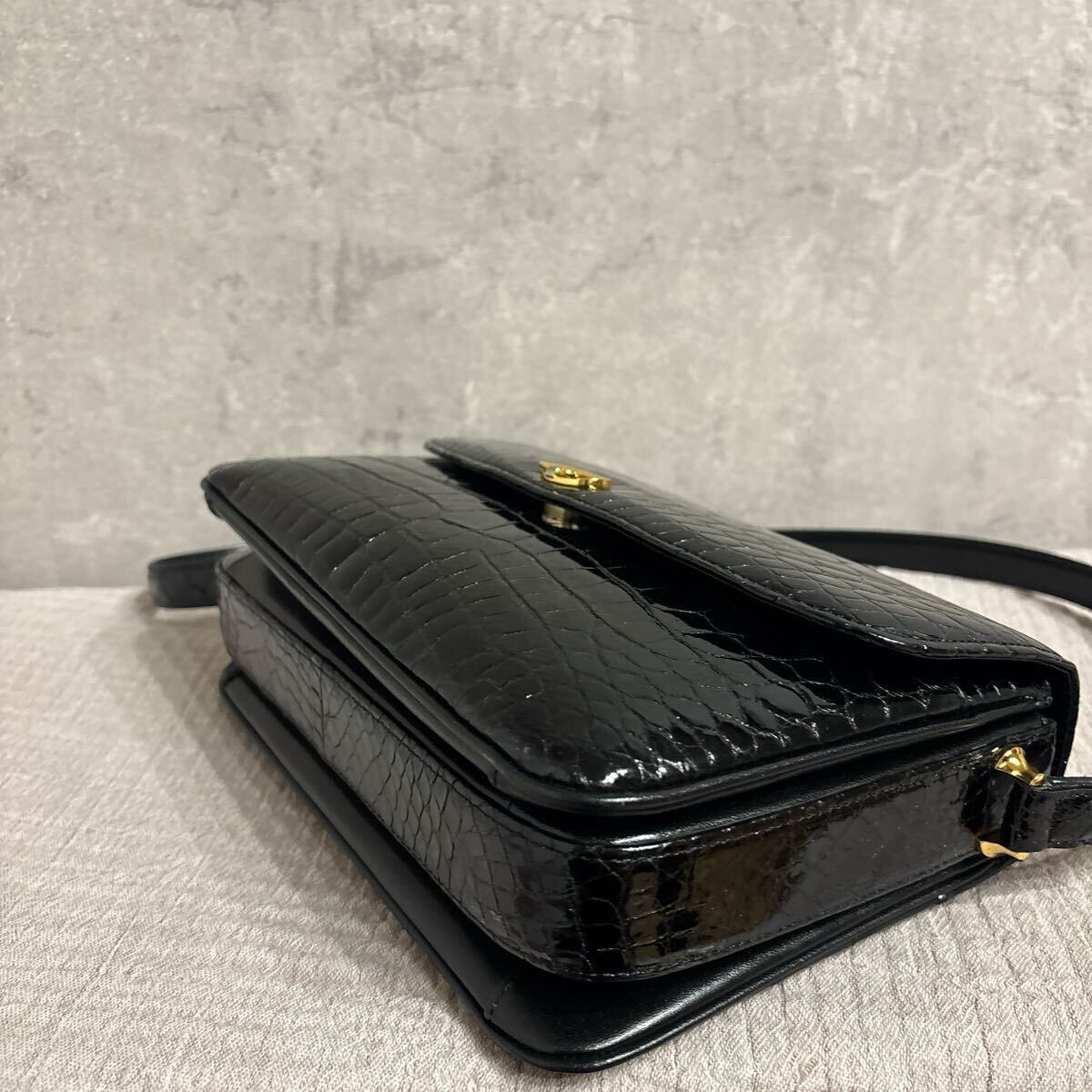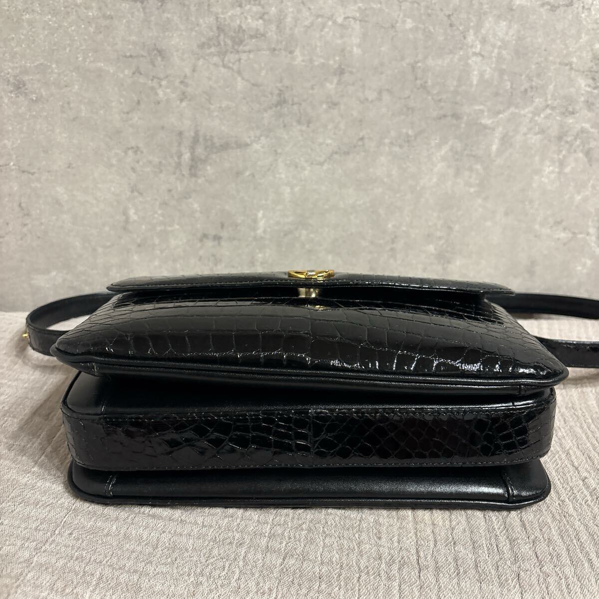 1円スタート accent クロコダイル ショルダーバッグ ブラック 黒 ゴールド金具 ワニ革