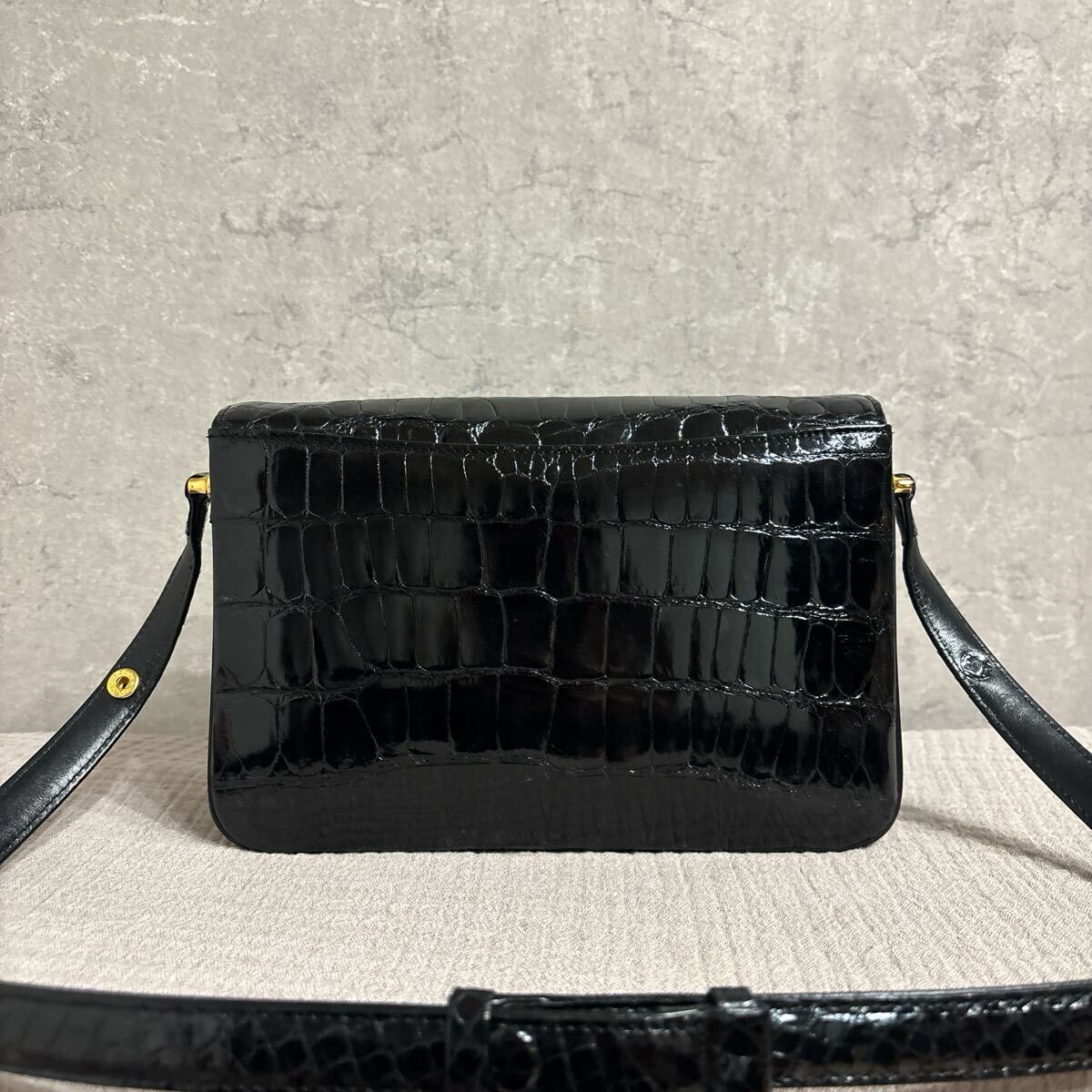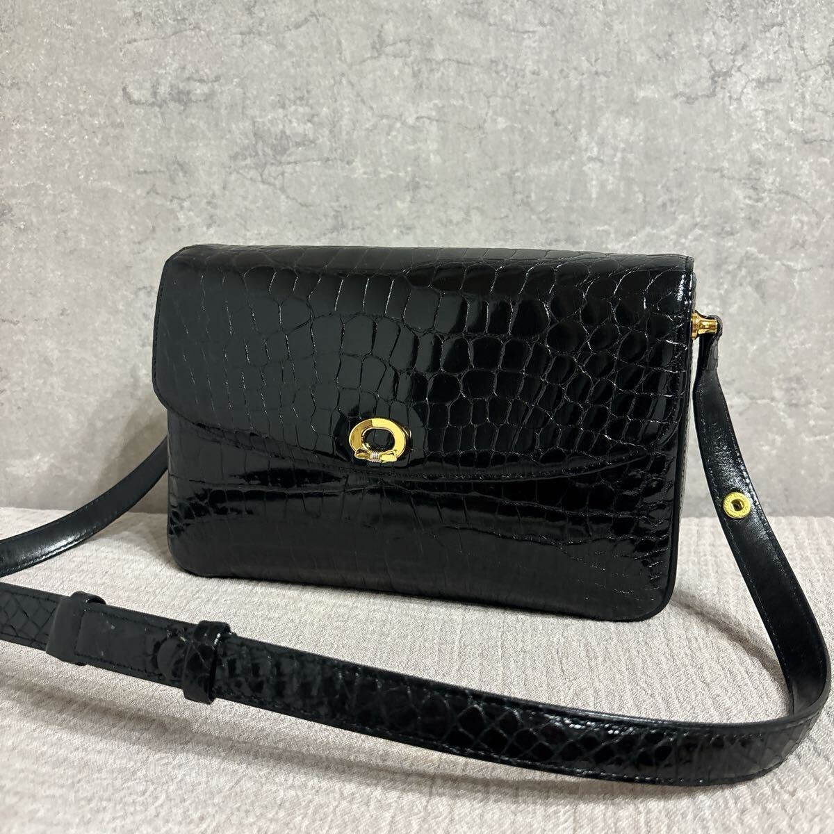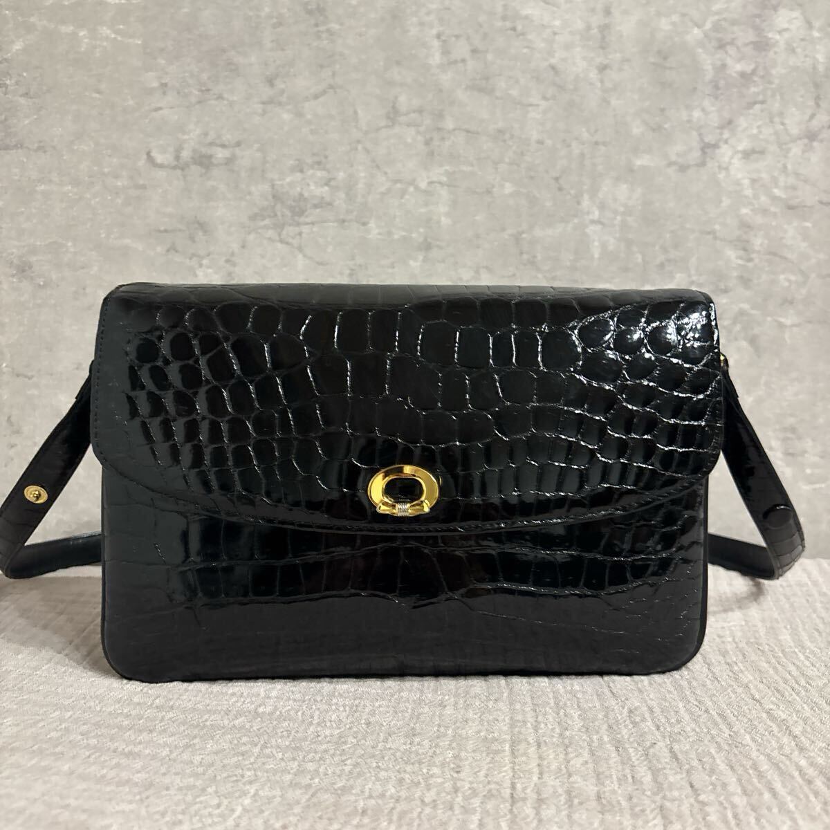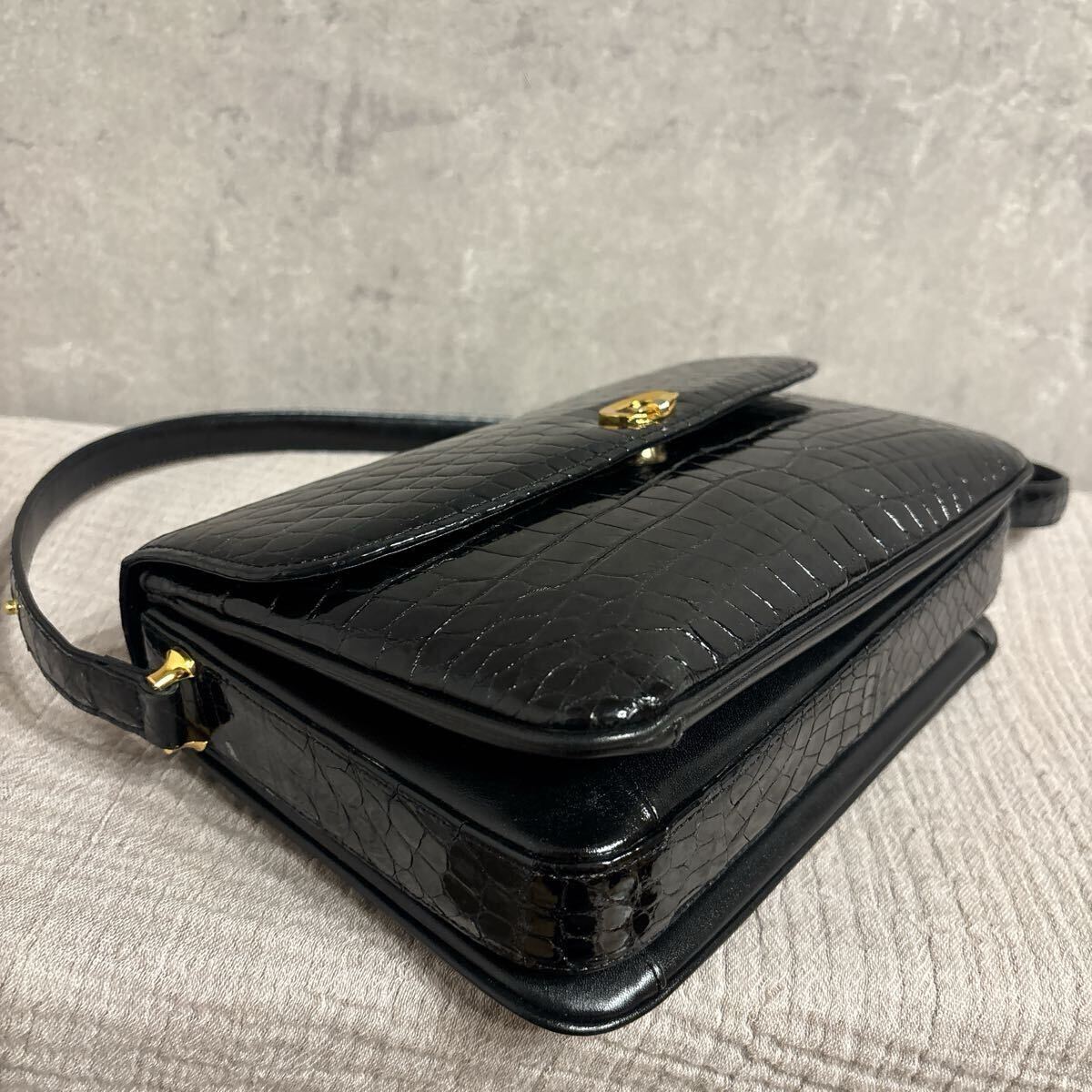 1円スタート accent クロコダイル ショルダーバッグ ブラック 黒 ゴールド金具 ワニ革