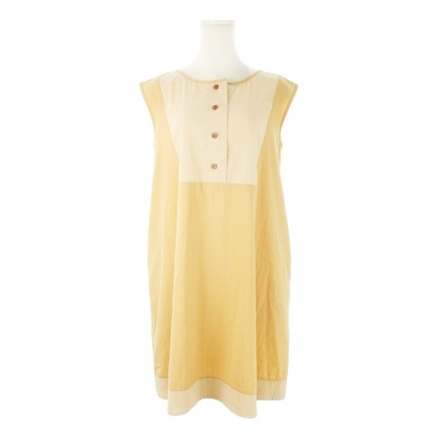 フォクシーニューヨーク FOXEY NEW YORK ワンピース ミニ ノースリーブ Aライン 切替 配色 バイカラー 38 M ペールオレンジ