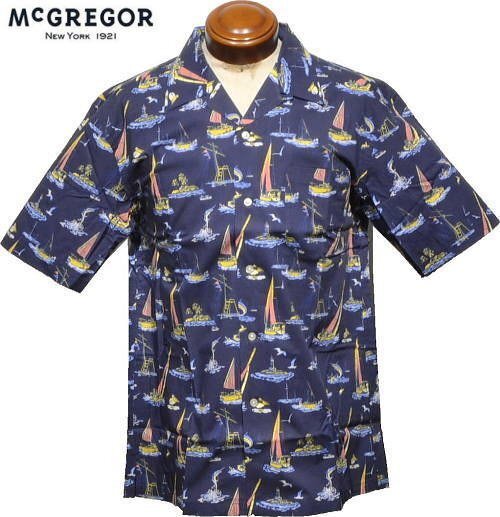 【ネイビー LL】 マクレガー 半袖シャツ メンズ 111164703 手洗い可 nowarttテキスタイル アロハシャツ 開襟シャツ オープンカラーシャツ