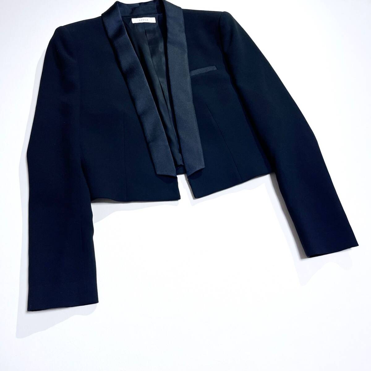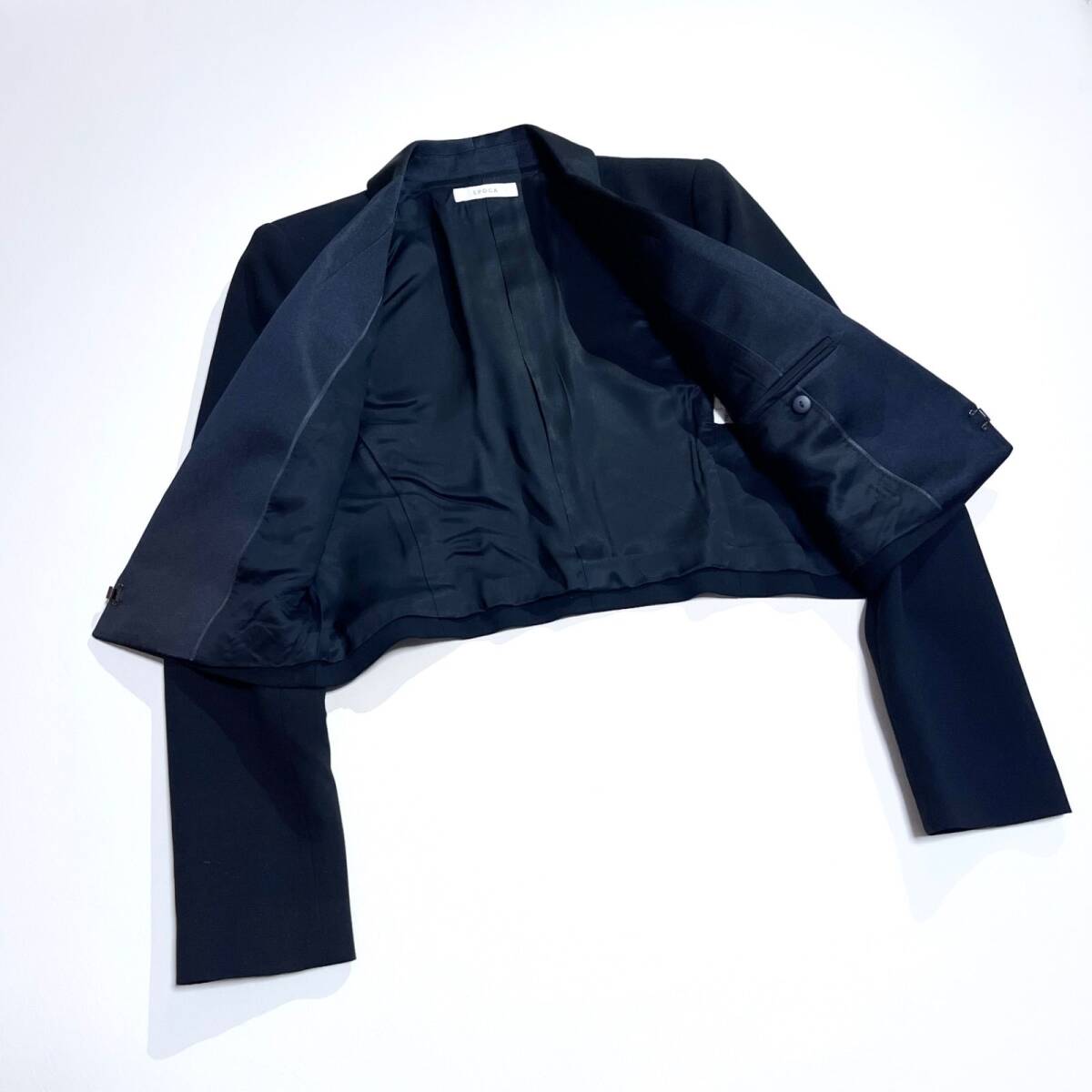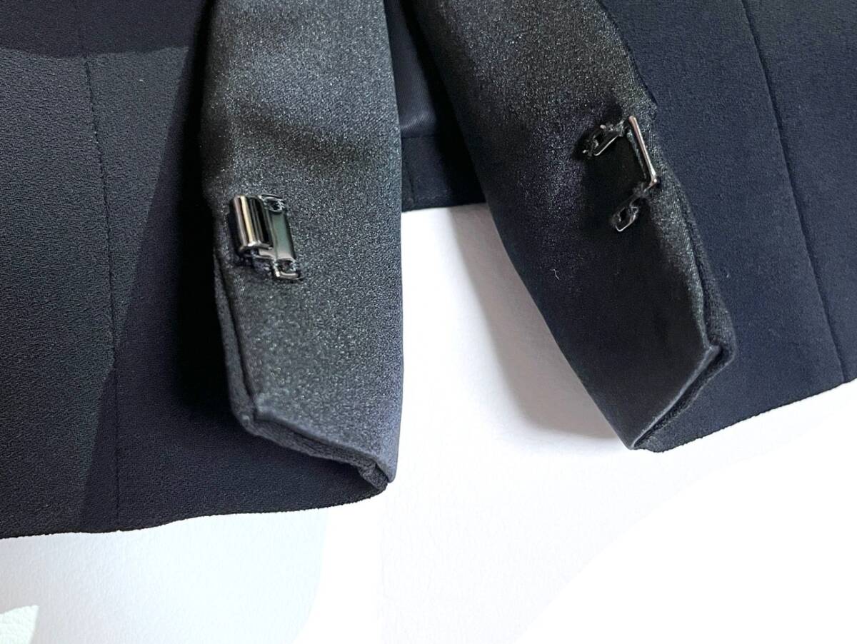 ブラックフォーマルジャケット シルク40% ショート丈 三陽商会 ノーカラージャケット ハンサムジャケット カラーレス ショート丈コート サテン 礼服