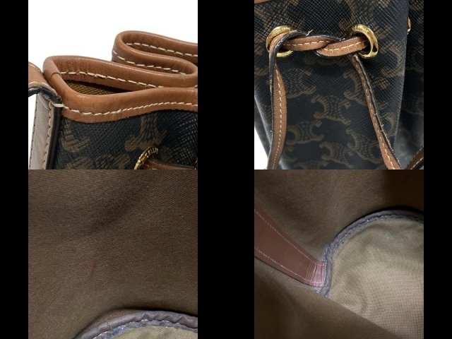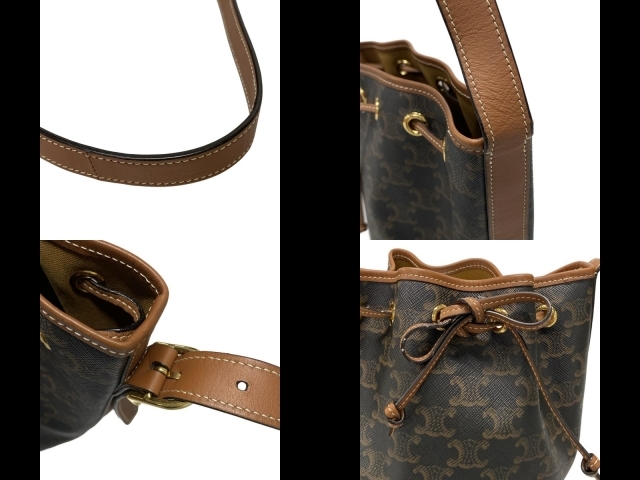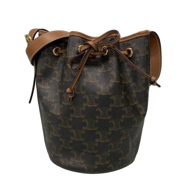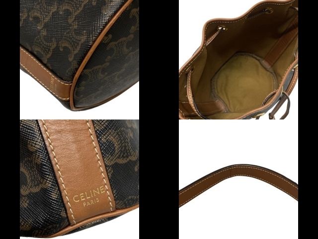 セリーヌ CELINE ショルダーバッグ スモール ドローストリング/トリオンフキャンバス タン(黒×ブラウン) 巾着型 バッグ