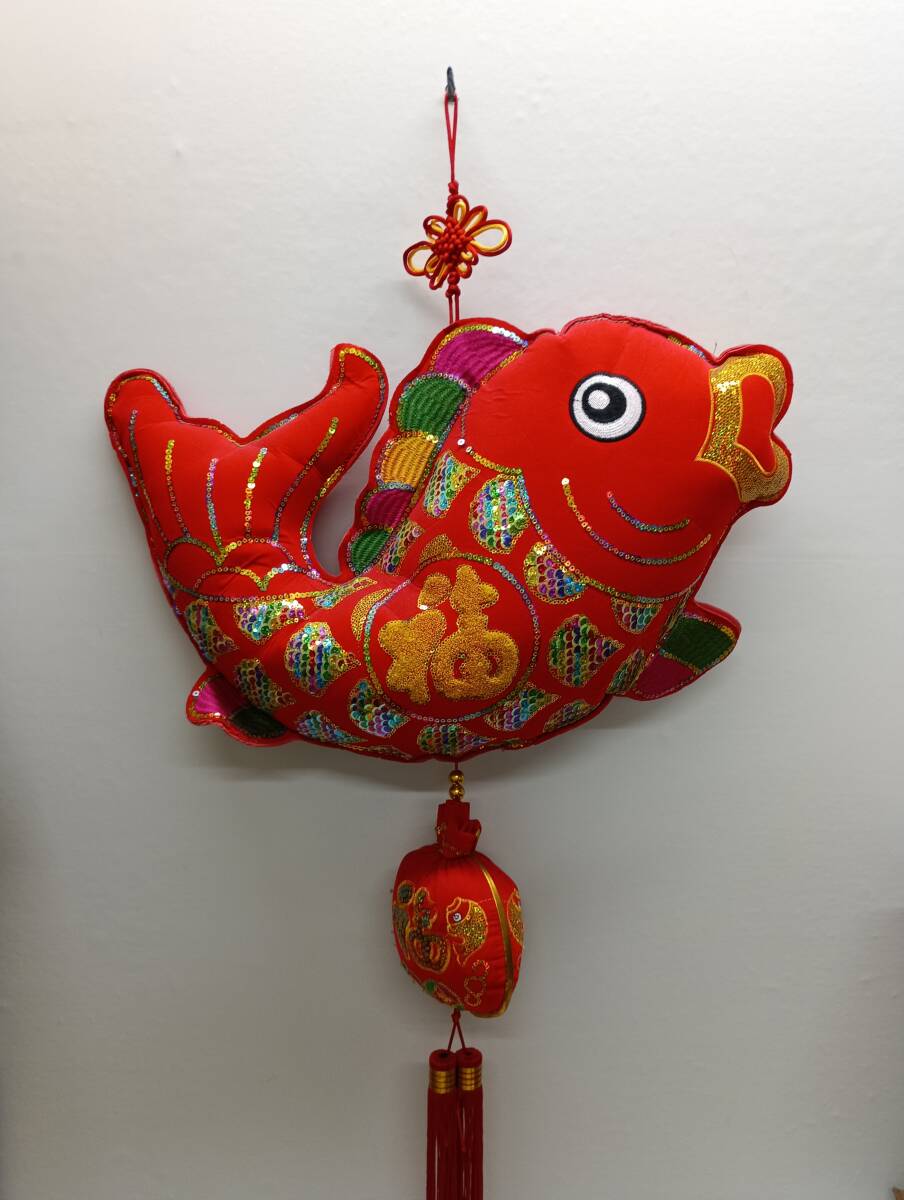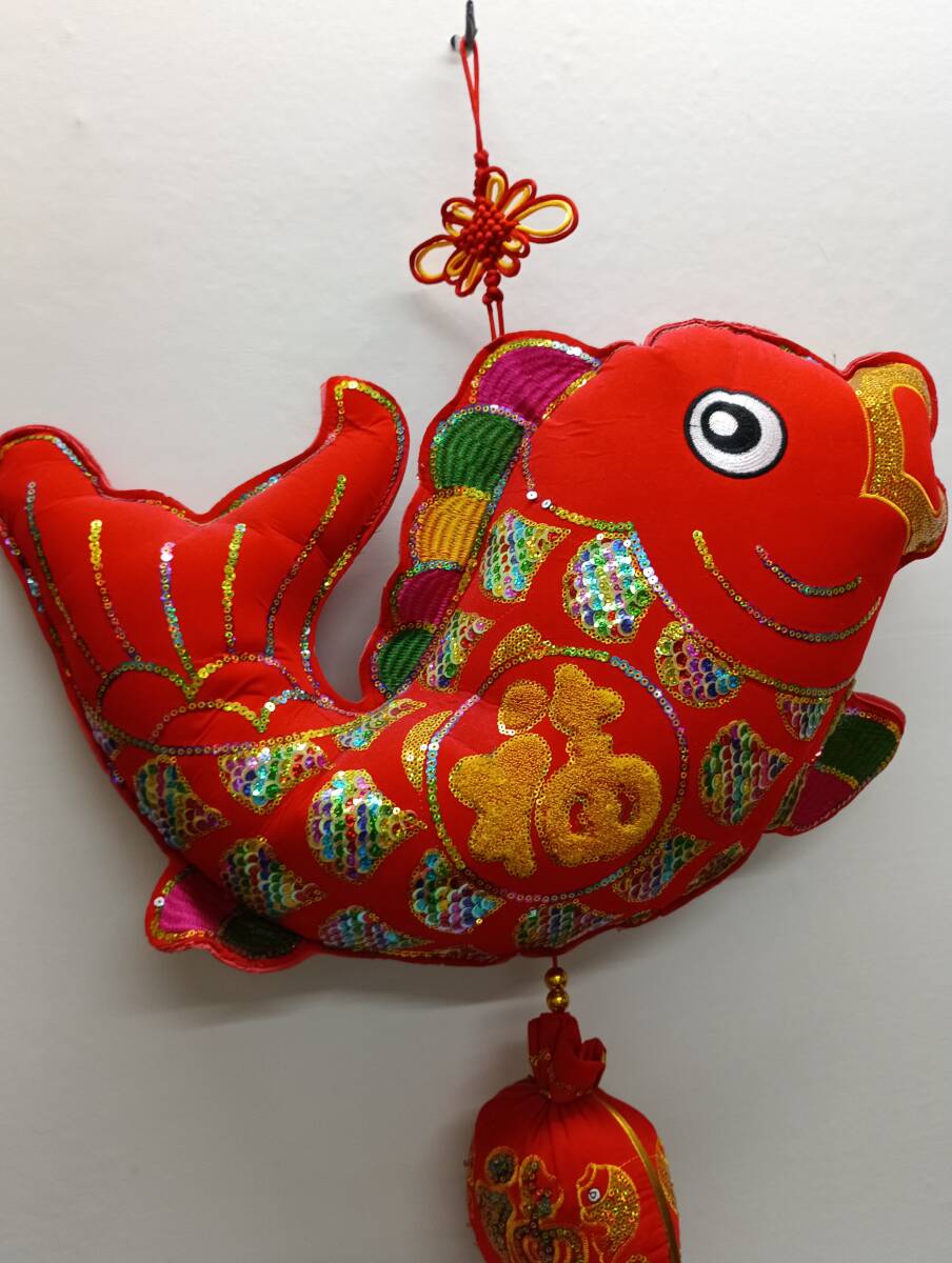 中国 春節 鯛 飾り 縁起物 福 CHINA 1円スタート 可愛い デザイン 美品 玄関飾り 正月